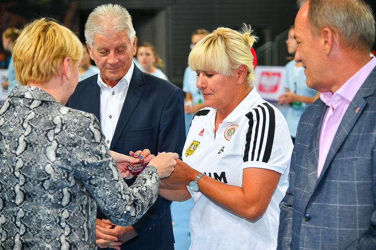 Przed ostatnim meczem drugiego dnia turnieju miała miejsce miła uroczystość. Srebrną odznakę „Za zasługi dla Sportu” na wniosek Marszałka Województwa Dolnośląskiego, Cezarego Przybylskiego w imieniu Ministra Sportu i Turystki Witolda Bańki, wręczyła poseł Mirosławy Stachowiak-Różecka. Wyróżnienia otrzymali przedstawiciele lubińskiego klubu: prezes Witold Kulesza, trener żeńskiej drużyny Bożena Karkut, a także dyrektor i były trener MKS Zagłębie Lubin, Jerzy Szafraniec.