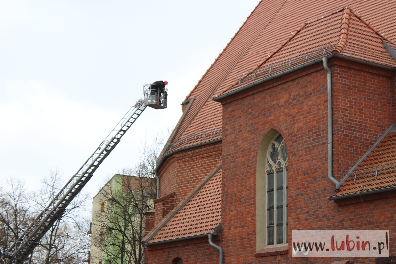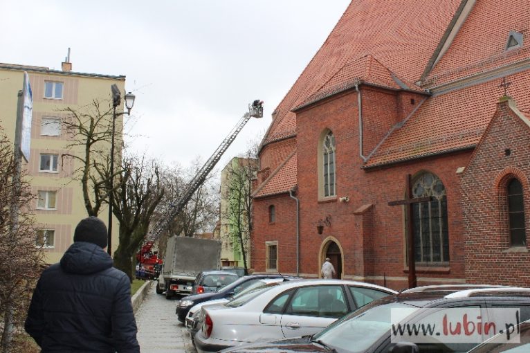 Na szczęście to nie pożar, czego obawiali się nasi Czytelnicy, zaalarmowani obecnością dwóch wozów strażackich pod kościołem Matki Bożej Częstochowskiej w Lubinie.