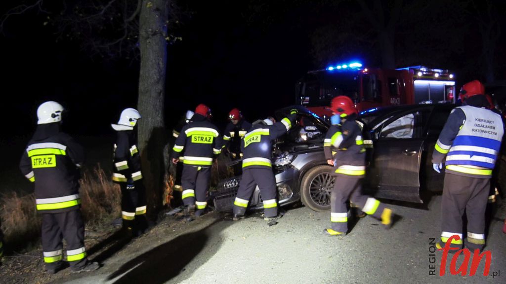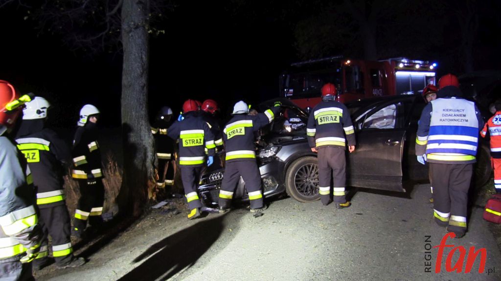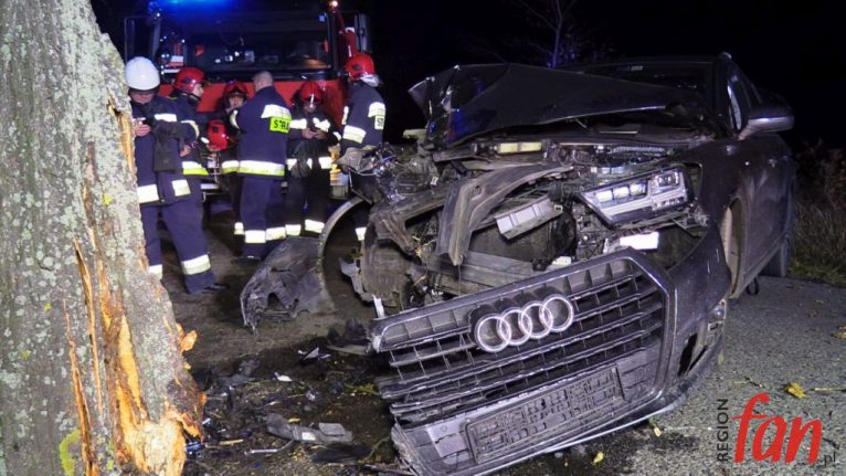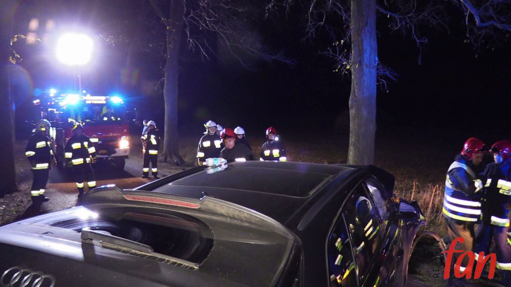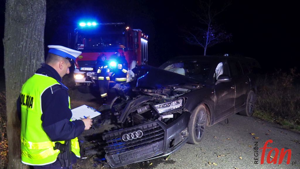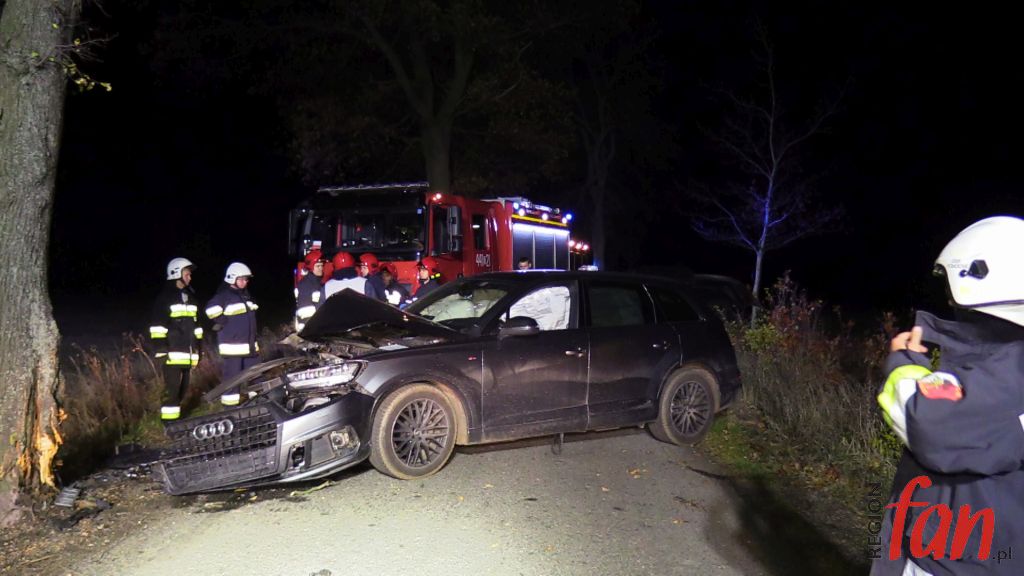 Do tego groźnie wyglądającego zdarzenia doszło w poniedziałek, 5 listopada, tuż po godz. 18, na prostym odcinku wiejskiej drogi  niedaleko Pomocnego w powiecie jaworskim. 44-letni mieszkaniec powiatu lubińskiego stracił panowanie nad kierownicą osobowego audi Q7, w wyniku czego wypadł z jezdni i z dużą siłą uderzył w przydrożne drzewo.