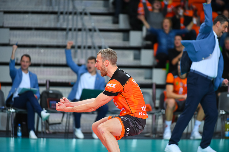 – Ten punkt jest dla nas bardzo ważny, a dla Jastrzębskiego Węgla także był, bo chcieli u nas na pewno wygrać za trzy. Atmosfera na trybunach poniosła nas do tego, aby jeszcze bardziej pokazać to, co naprawdę pokazujemy na wyjazdach, bo wygrywamy na wyjazdach, a u siebie niestety nie. Trochę jeszcze mamy takie poczucie, że czegoś nam brakuje, a tym czymś jest właśnie zwycięstwo we własnej hali – podkreśla Jędrzej Gruszczyński, Libero Cuprum Lubin.