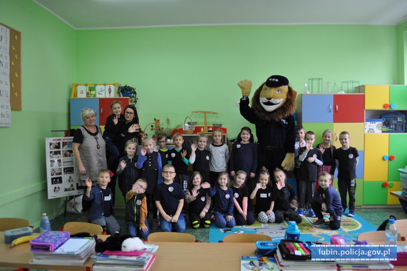 Funkcjonariusze Komendy Powiatowej Policji w Lubinie systematycznie odwiedzają szkoły naszego powiatu, by w ramach akcji „Kręci mnie bezpieczeństwo… przez cały rok szkolny” uczyć dzieci prawidłowego poruszania się po drodze. Tym razem policjantkom z zespołu ds. profilaktyki społecznej oraz funkcjonariuszom z rewiru dzielnicowych towarzyszył nietypowy policjant. Był ogromny, włochaty, a zamiast dłoni miał łapy. Komisarz Lew był niewątpliwie wielką atrakcją dla najmłodszych, a prowadzone z jego udziałem prelekcje zawsze pełne śmiechu i zabawy.