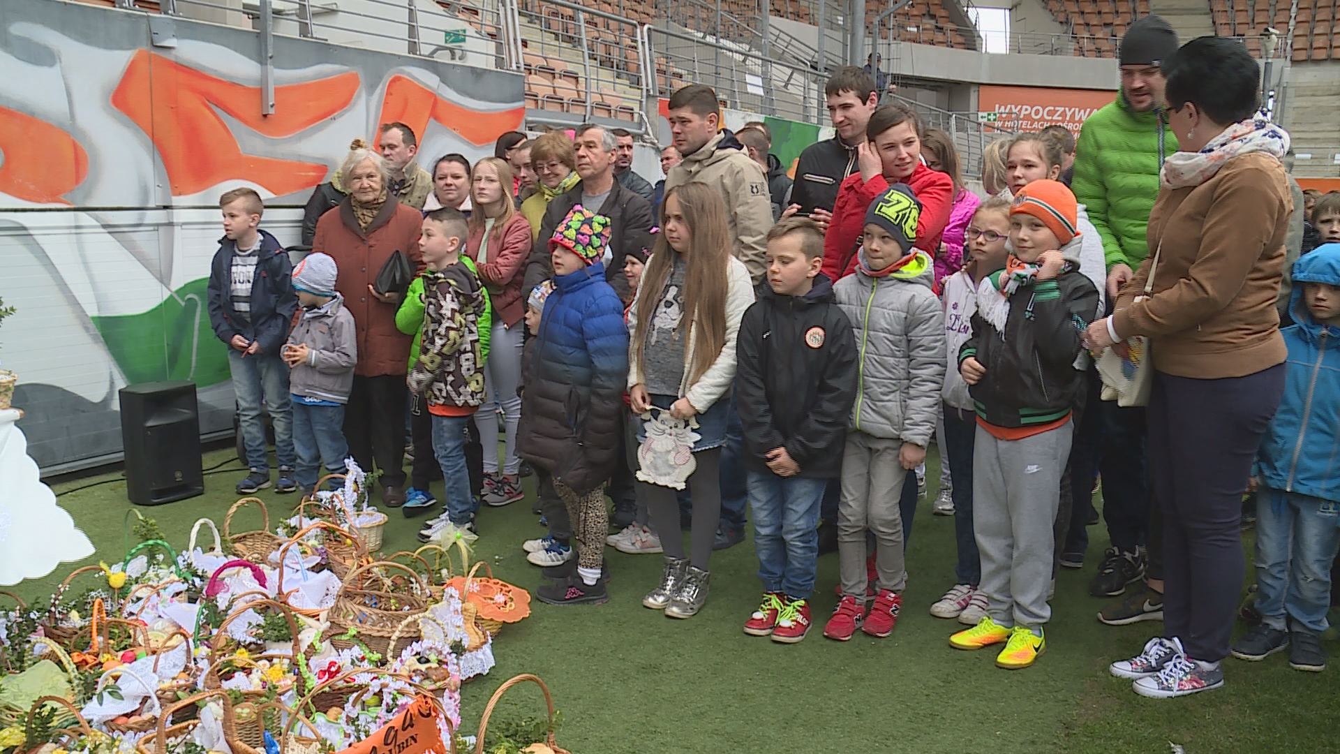Po raz pierwszy wierni spotkali się na stadionie Zagłębia, żeby poświęcić zawartość Wielkanocnych koszyczków. Pomysł się spodobał, a na stadion Zagłębia przyszły całe rodziny.