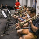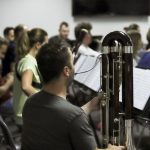 – Dzisiaj jesteśmy w wielkim artystycznym pokoju, w którym mamy porozrzucane bardzo cenne przedmioty, które musimy poukładać, scalić ze sobą i stworzyć jeden piękny muzyczny obraz – mówi dyrektor i dyrygent Narodowej Orkiestry Dętej Mariusz Dziubek, opisując to, co właśnie się dzieje w sali prób, podczas gdy w tle słyszymy wiele różnych dźwięków. – Ten harmider muzyczny jest fascynujący. Każdy muzyk ćwiczy swoją partię, uczy się jej jeszcze, żeby jak najpiękniej zagrać indywidualnie. Za chwilę wejdę na salę prób i to wszystko scalę w jedną całość, w ten finalny produkt, który usłyszymy w sobotę – wyjaśnia.