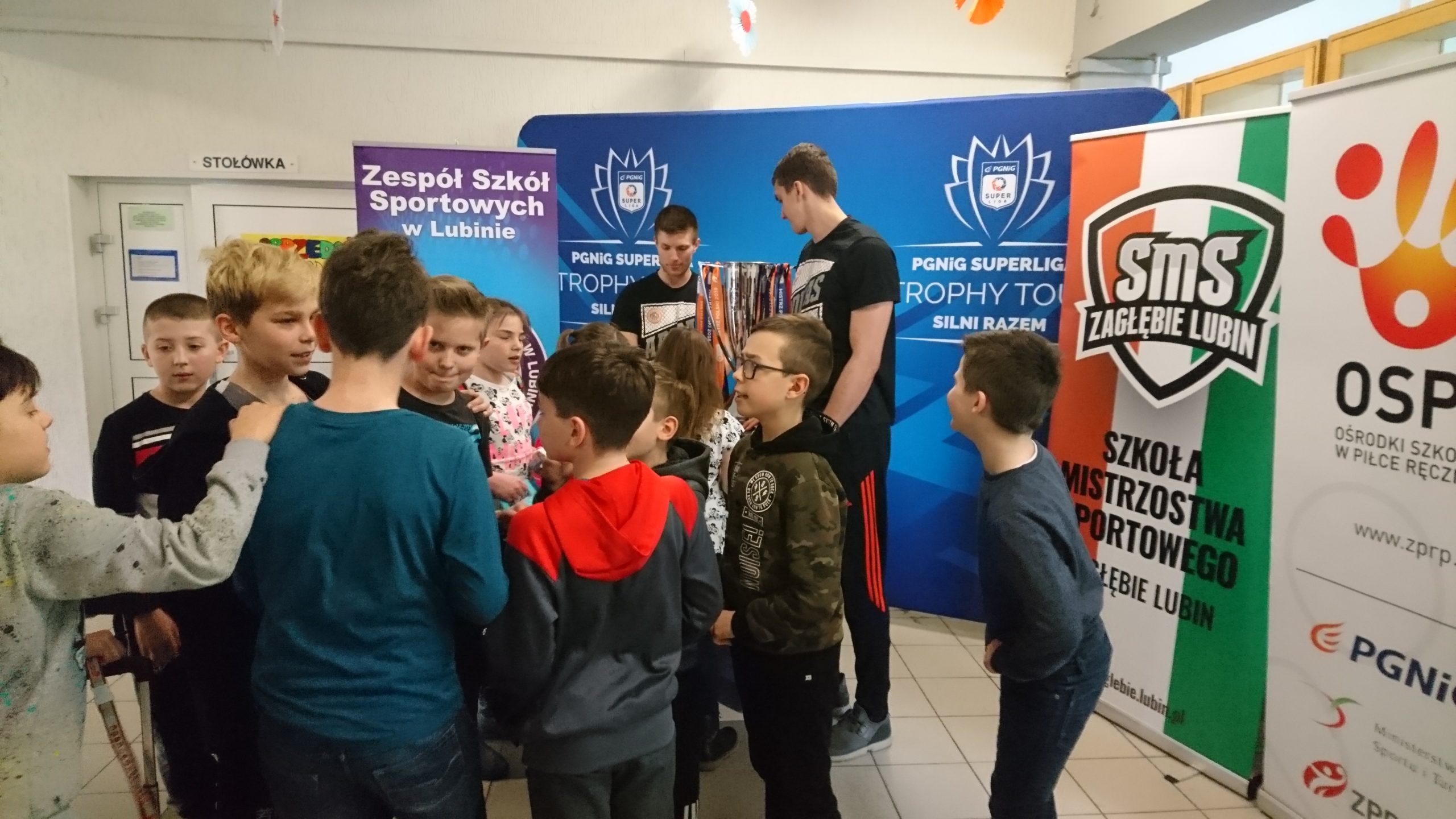 Uczniowie chętnie ustawiali się do zdjęć i zbierali autografy – Nikogo nie trzeba było namawiać. Już od rana nasi uczniowie wypytywali kiedy może będzie przyjść zobaczyć puchar. Wielu z nich gra w piłę ręczną, więc zobaczyć takie trofeum z bliska to naprawdę nie lada frajda – mówi Elżbieta Szczepaniak, nauczyciel w Zespole Szkół Sportowych w Lubinie i trener grup młodzieżowych Zagłębia.