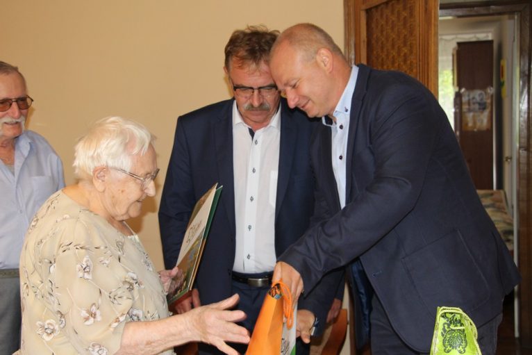 Życzenia dalszych lat w zdrowiu i wszelkiej pomyślności złożył jubilatce wójt Tadeusz Kielan oraz radny Tomasz Fuczek.