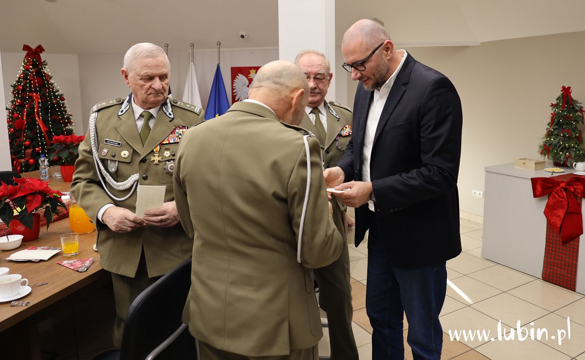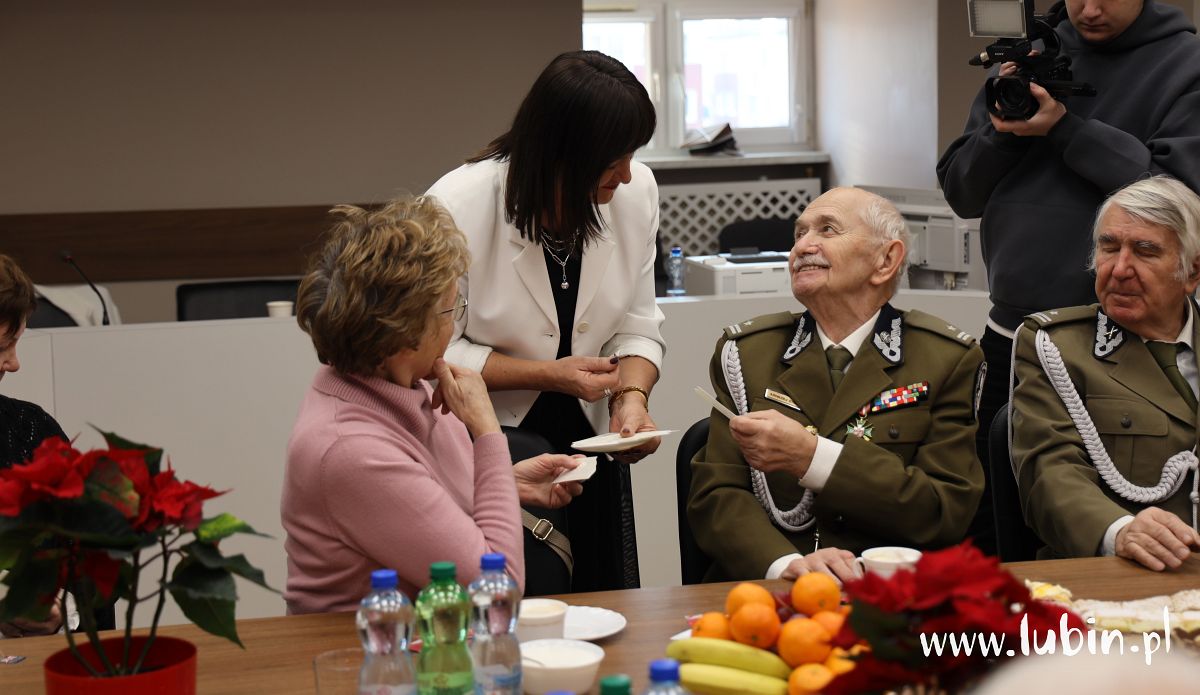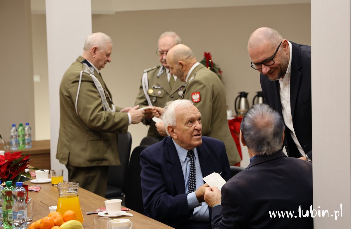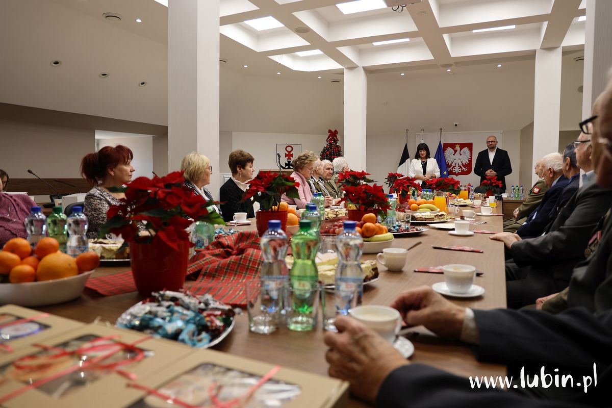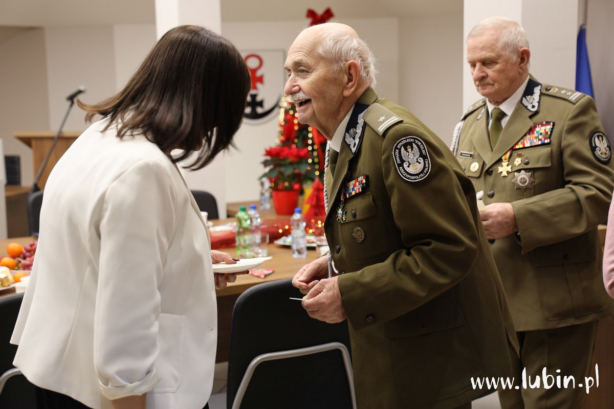 – Staramy się zawsze o dobrą atmosferę. Chcemy podziękować naszym kombatantom za cały rok współpracy, bo bez nich nasze uroczystości byłyby dużo uboższe – mówi starosta lubiński Paweł Kleszcz. – Dziś przy świątecznym stole, chociaż sesyjnym, dziękujemy im i składamy najlepsze życzenia na święta dla nich i ich najbliższych. Liczymy na nich również w przyszłym roku – dodaje.