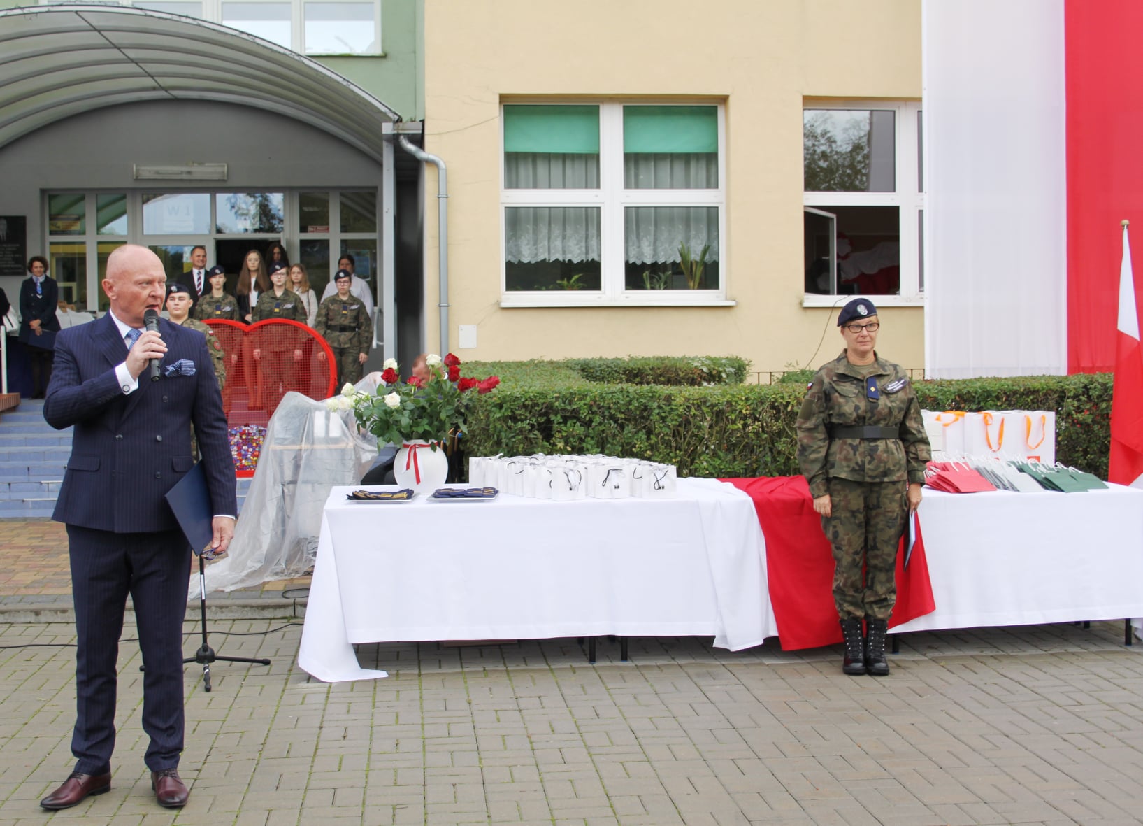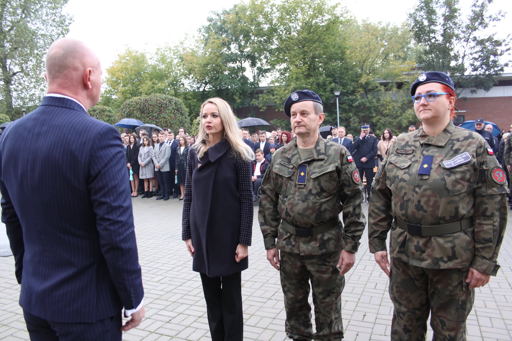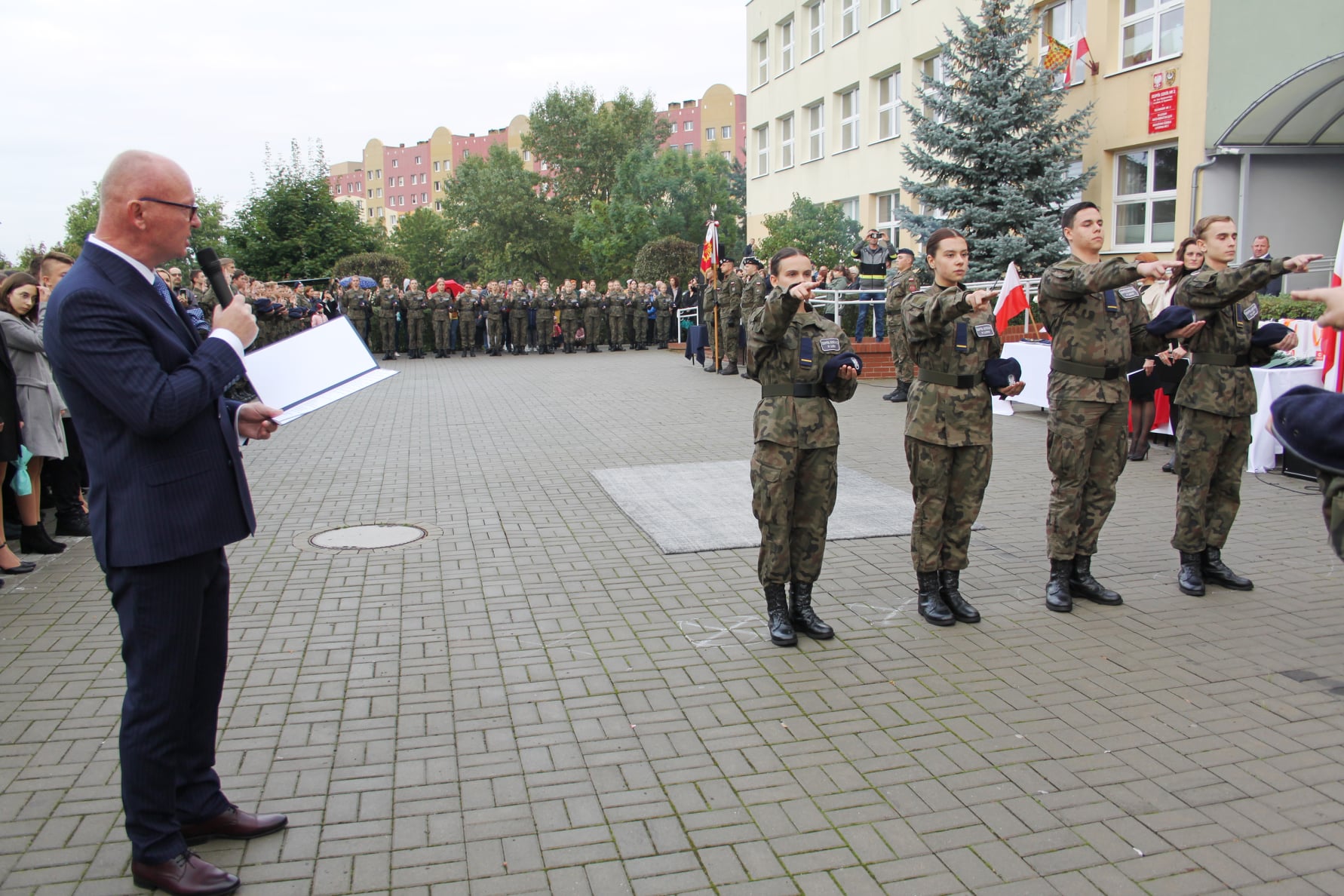 – To dla nas bardzo ważny dzień. Rotę przysięgi złożyło 224 uczniów, są to uczniowie branżowej szkoły pierwszego stopnia, Technikum nr 2 oraz klasy mundurowe 3 LO – wylicza dyrektor Artur Pastuch. – W tym roku nasza szkoła liczy 1150 uczniów, to kolejny rok dobrego naboru. Myślę, że uczniów przyciągają do nas ciekawe kierunki, po drugie trend, który powrócił, aby po zakończonej szkole mieć już zawód. Młodzi ludzie rozpoczynają tutaj najpiękniejszą przygodę swojego życia, tutaj wchodzą w dorosłość. Ich edukacja jest wyzwaniem dla wszystkich, dla mnie podstawą jest szacunek dla ucznia, bo nie ma szkoły bez ucznia oraz podejście pełne empatii, bo dziś młodzież ma coraz więcej problemów – podkreśla.