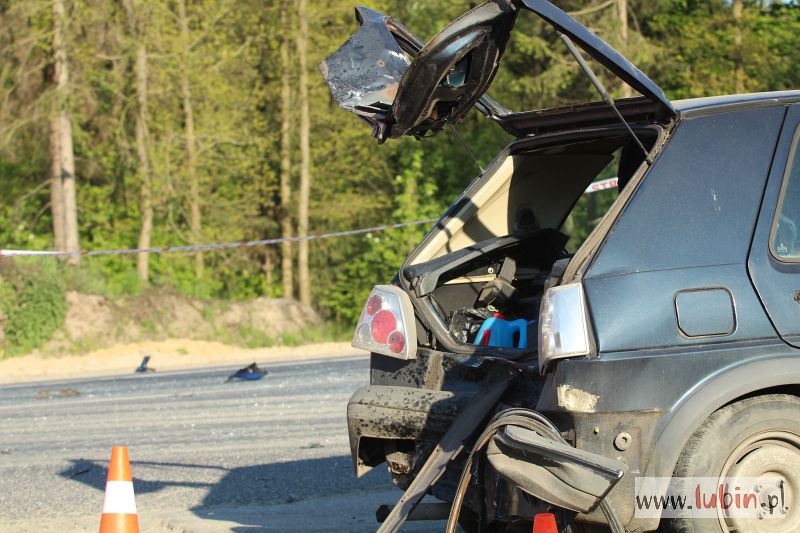 – Ze wstępnych ustaleń policjantów wynika, że kierujący samochodem marki Volkswagen Golf chciał skręcić na wysokości nowego zjazdu na Zimną Wodę. Za nim poruszał się motocyklista z pasażerką. Doszło do najechania na tył golfa – relacjonuje aspirant sztabowy Jan Pociecha, oficer prasowy lubińskiej policji.