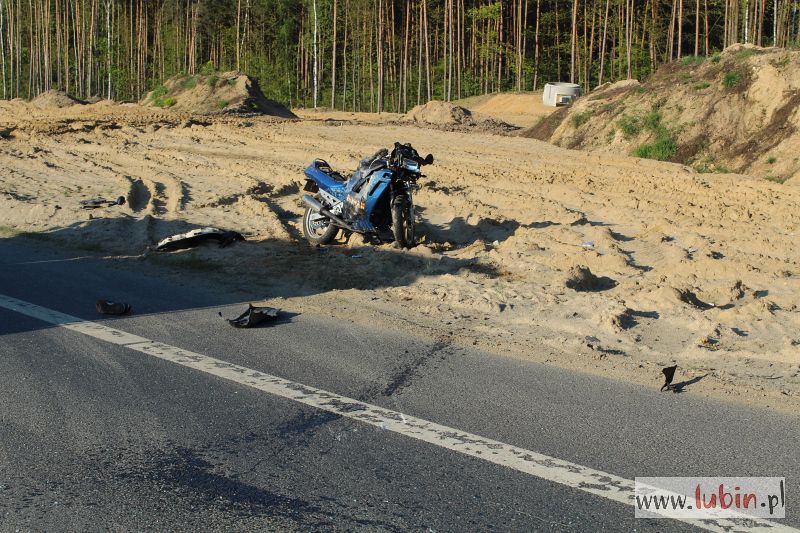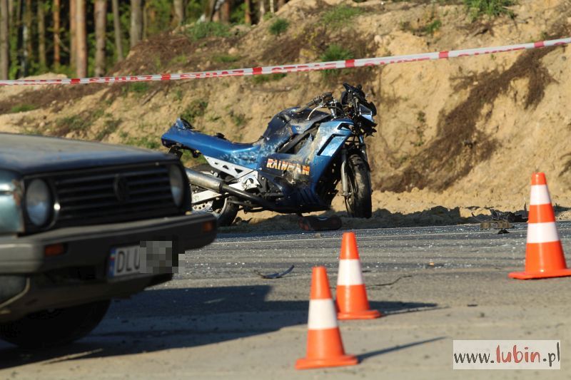 Dwie osoby trafiły do szpitala, w wyniku zderzenia motocykla z autem osobowym. Krajowa trójka między Lubinem a Legnicą przez kilka godzin była całkowicie zablokowana.