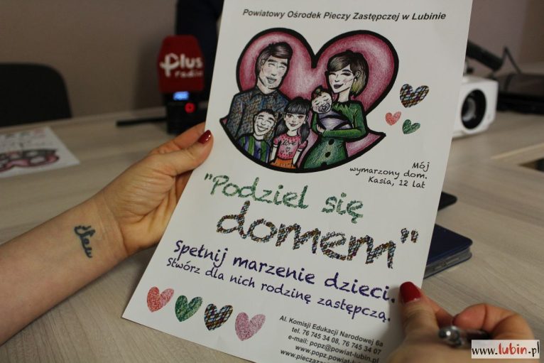 Film promocyjny stworzyli sami pracownicy Ośrodka. – Zrobiliśmy to jak najtańszym sumptem. Ja zagrałem sprawcę przemocy, a koleżanka pokrzywdzoną dziewczynę – mówi dyrektor Powiatowego Ośrodka Pieczy Zastępczej Artur Tórz. – Twórczynią plakatu zaś jest nasza podopieczna 12-letnia Kasia. To ona namalowała ten rysunek – dodaje, prezentując plakat promujący rodzicielstwo zastępcze, który można już zobaczyć między innymi w lubińskich autobusach.