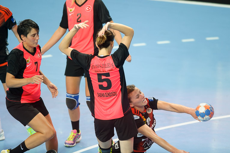 Już w dziesiątej minucie meczu o czas dla swojej drużyny poprosił Serdar Eler. Wówczas zawodniczki z Ankary przegrywały z Metraco Zagłębiem 1:5. Spotkanie rozpoczęło się podobnie, jak ostatni mecz sparingowy obydwu drużyn, czyli od mocnego uderzenia miedziowych. Czas wzięty przez szkoleniowca Yenimahalle nie na wiele się zdał, gdyż kolejne dwie bramki zdobyły podopieczne Bożeny Karkut i było 7:1. Drugą bramkę mistrzynie Turcji, ponownie za sprawią Yeliz Ozel zdobyły dopiero w 13.minucie spotkania. Z biegiem czasu zespół z Ankary wrócił do gry, z kolei miedziowe zaczęły popełniać proste błędy, co przełożyło się na wynik – w 27.minucie było już tylko 9:10, W końcówce mistrzynie Turcji zdołały jeszcze doprowadzić do remisu, jednak ostatnią bramkę w tej części spotkania zdobyła Kinga Grzyb.