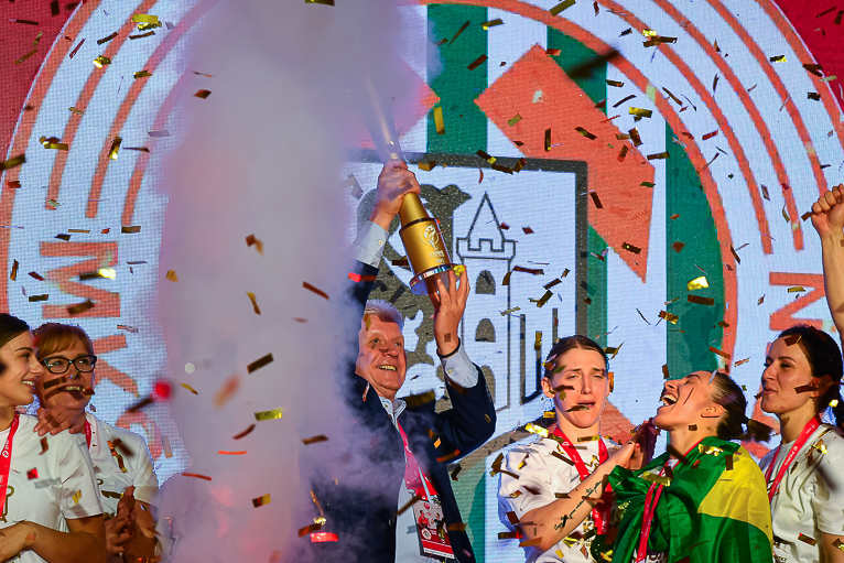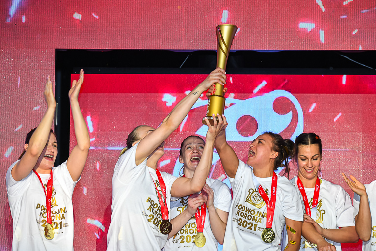 Na tle imponującej scenografii “ledowej” zawodniczki Zagłębia bezpośrednio po meczu wzniosły Puchar Polski  – 57.  w historii rozgrywek.