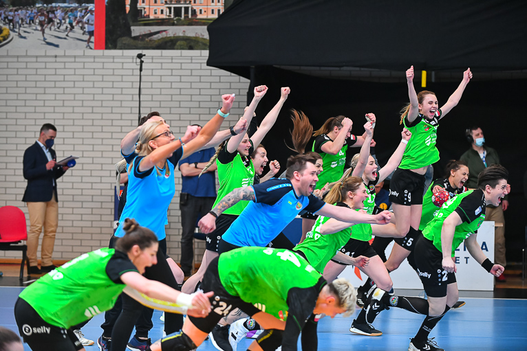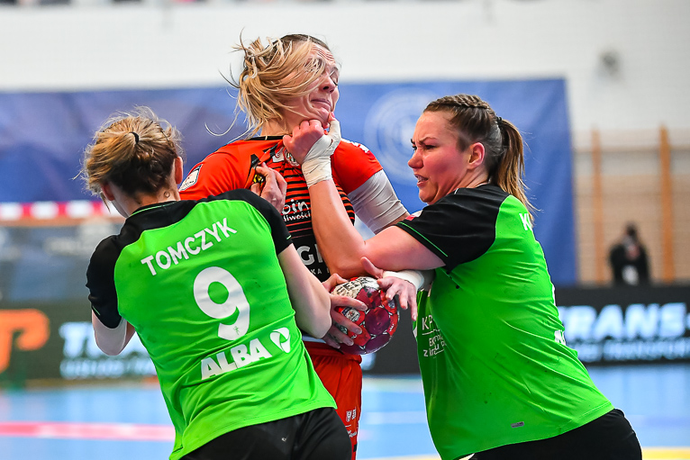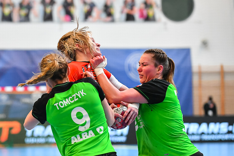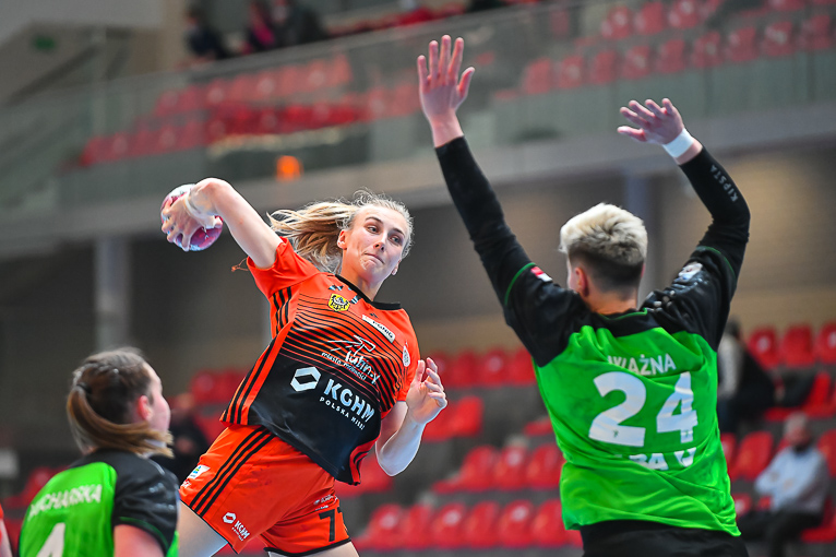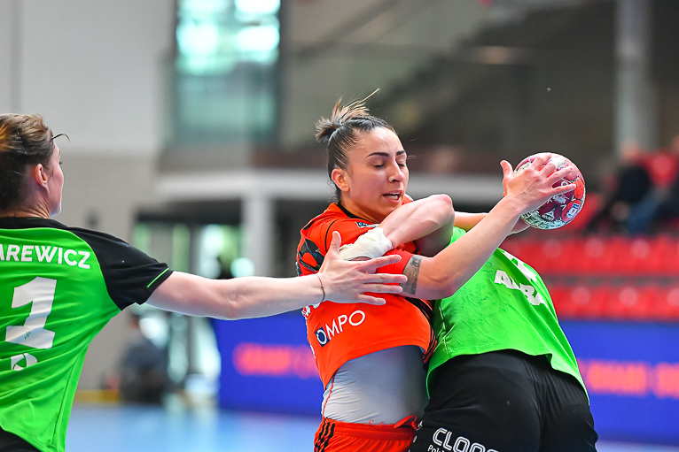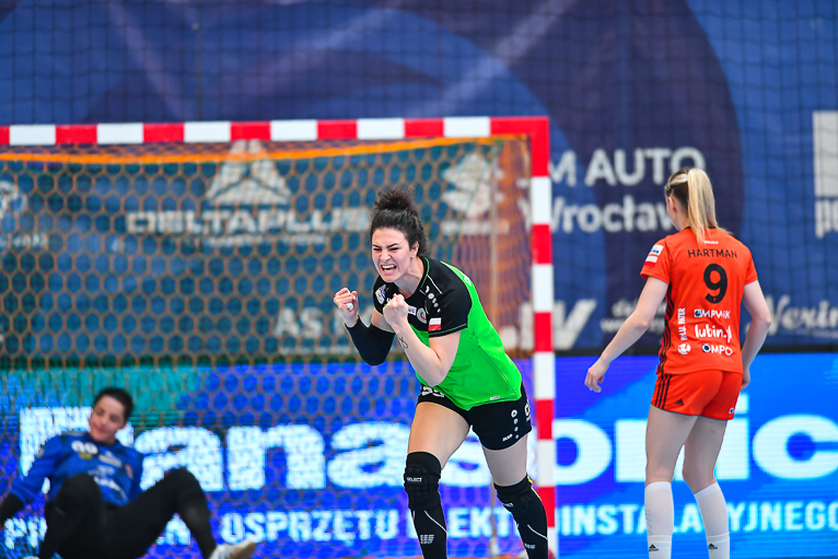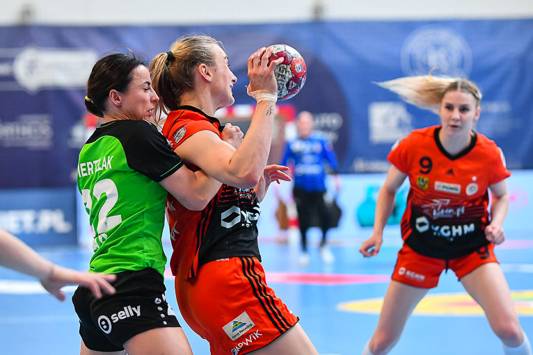 W drugą połowę dużo lepiej weszły miejscowe, które szybko odskoczyły na cztery bramki, przez co Zagłębie znów musiało gonić wynik. Podopieczne Bożeny Karkut i Renaty Jakubowskiej doszły rywalki na jedną bramkę po kwadransie gry i znów złapały wiatr w żagle. W 49. minucie bramkę po kontrze rzuciła Malwina Hartman i mieliśmy remis po 18. I znów lubinianki zaczęły grać skuteczniej w ofensywie i twardo w obronie, a miedzy słupkami cuda wyczyniała Monika Maliczkiewicz. Od momenty doprowadzenia przez Miedziowe do remisu mecz znów był „na styku”, a każda akcja mogła przesądzić o końcowym triumfie, tym bardziej, że trzy minuty przed końcem notowaliśmy remis po 21. Zagłębie miało swoje szanse, aby przełamać rywalki i wyjść na prowadzenie, ale brakowało przysłowiowej kropki nad „i”. Ta sztuka udała się czterdzieści sekund przed końcem, kiedy indywidulaną akcją po raz kolejny popisała się Patrycja Matieli. Zagłębie wyszło na prowadzenie 23:22 i było krok od wygranej za trzy punkty. Niestety w ostatniej akcji brazylijska rozgrywająca pomyliła się, podała wprost w ręce rywalek i w ostatniej sekundzie na remis rzuciła Aleksandra Tomczyk. Mieliśmy rzuty karne, które wciąż przedłużały nadzieję Miedziowych na mistrzostwo po tym meczu.