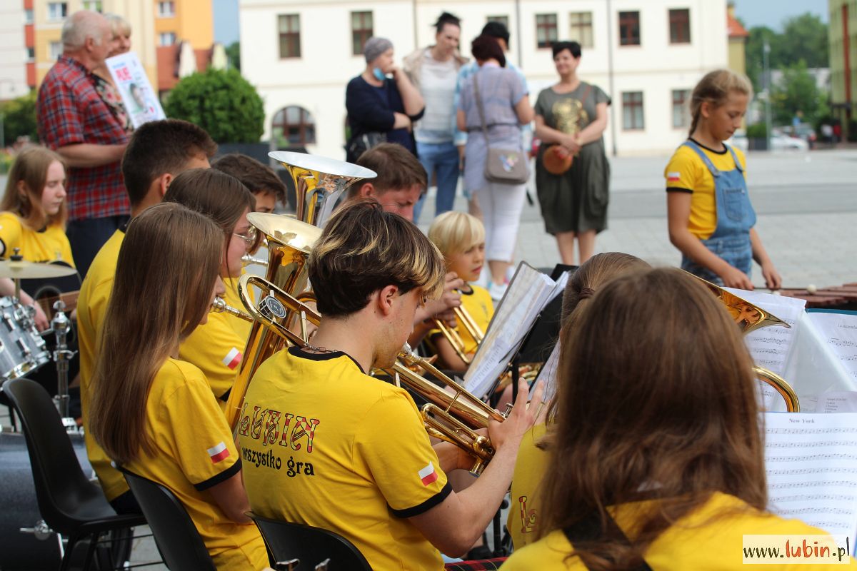 Między innymi wielkie przeboje „New York, New York”, „Deszczowa piosenka” czy „YMCA” Village People można było dziś usłyszeć na lubińskim rynku. Godzinny koncert dała tu Młodzieżowa Orkiestra Miasta Lubina „Cuprum Band”, a wszystko po to, by wspomóc zbiórkę pieniędzy na operację małego Jerzyka Żerko.