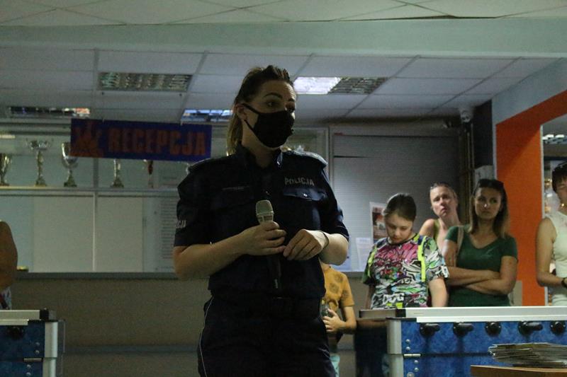 Liczne grono dzieci wraz ze swoimi rodzicami odwiedziło kręglarski obiekt Regionalnego Centrum Sportowego. Wszystko za sprawą Akcji Lato. Zanim jednak młodzi ludzie przystąpili do sportowych zajęć, profilaktyki z zakresu bezpiecznego poruszania się po drodze udzieliła przedstawicielka Komendy Powiatowej Policji w Lubinie.