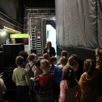 Dzieci zafascynowane słuchały opowieści pracowników Muzy, oglądając najpierw rekwizyty i lalki „grające” w przedstawieniach oraz scenę i jej kulisy. Poznały też między innymi słowo „inspicjent”, zobaczyły, jak działa interkom oraz obejrzały to, co zazwyczaj wisi nad sceną pod sufitem, czyli między innymi wielkie reflektory. Następnie wędrując tajemnymi korytarzami dotarły do części z garderobami i pomieszczeń, gdzie pracują oświetleniowcy oraz dźwiękowcy i skąd spoglądają na scenę. Maluchom szczególnie spodobało się miejsce, gdzie stoi wielka maszyna do wyświetlania filmów. Zobaczyły również, jak kiedyś wyglądała taśma filmowa, na której uwieczniano obrazy.