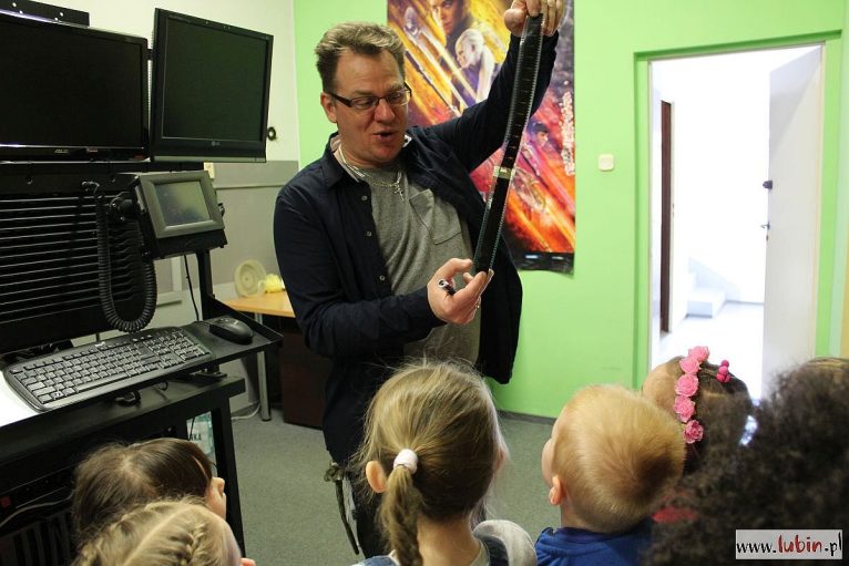 – Ta scena ma 50 lat i jest zrobiona z drewna okrętowego. Po dwóch, trzech tygodniach ta dziurka zniknie – mówił, wbijając mocowanie w deski sceny, szef akustyków z Centrum Kultury Muza Robert Buż, którego z wielkim zainteresowaniem słuchała grupa małych lubinian. Podobnych ciekawostek dziś można było się dowiedzieć znacznie więcej. Z okazji Międzynarodowego Dnia Teatru można było zajrzeć za kulisy Muzy.