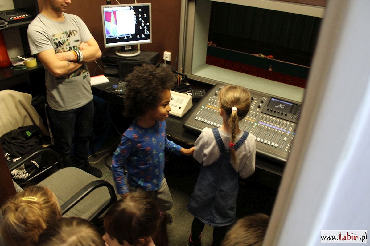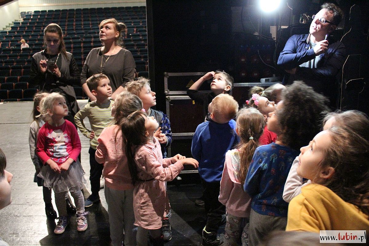 – Ta scena ma 50 lat i jest zrobiona z drewna okrętowego. Po dwóch, trzech tygodniach ta dziurka zniknie – mówił, wbijając mocowanie w deski sceny, szef akustyków z Centrum Kultury Muza Robert Buż, którego z wielkim zainteresowaniem słuchała grupa małych lubinian. Podobnych ciekawostek dziś można było się dowiedzieć znacznie więcej. Z okazji Międzynarodowego Dnia Teatru można było zajrzeć za kulisy Muzy.