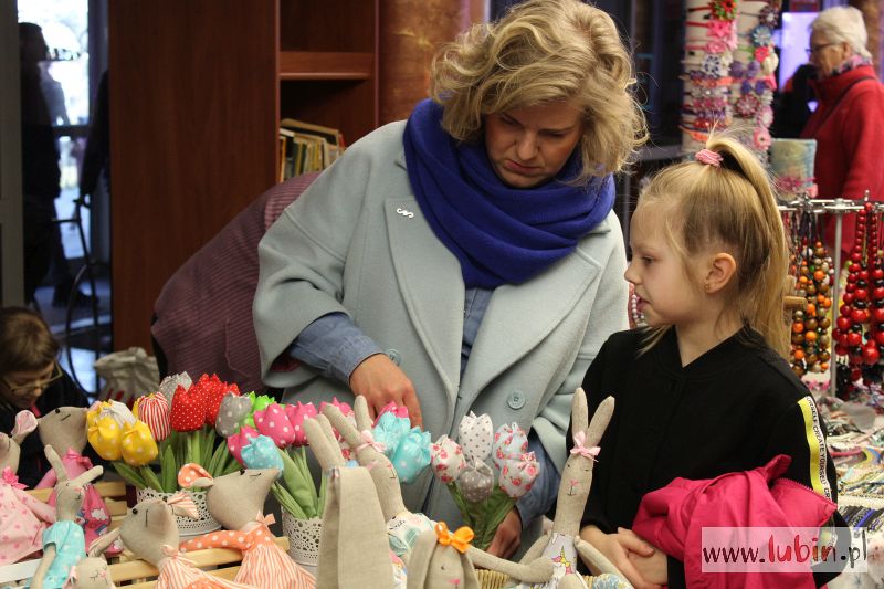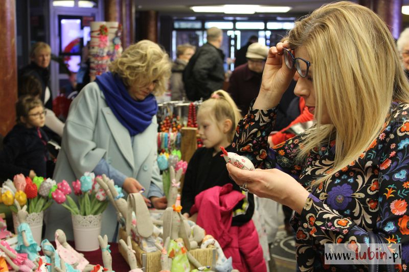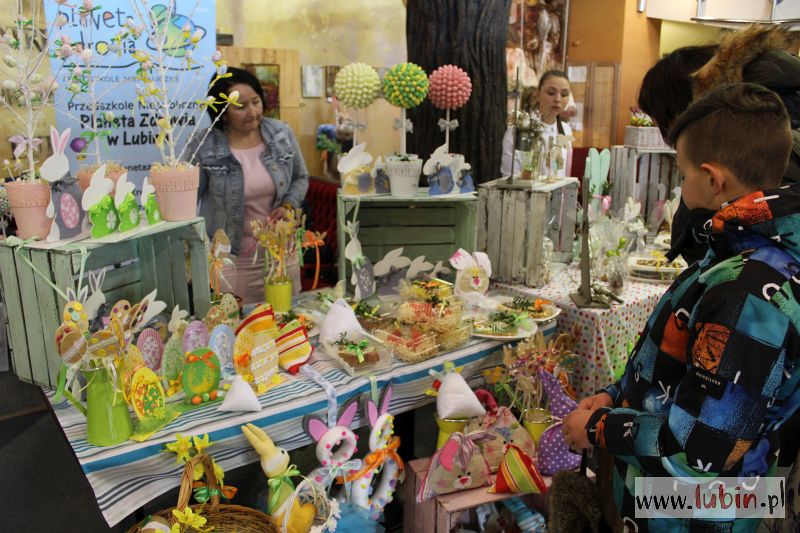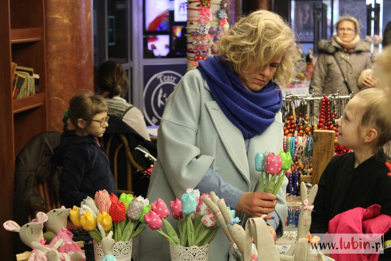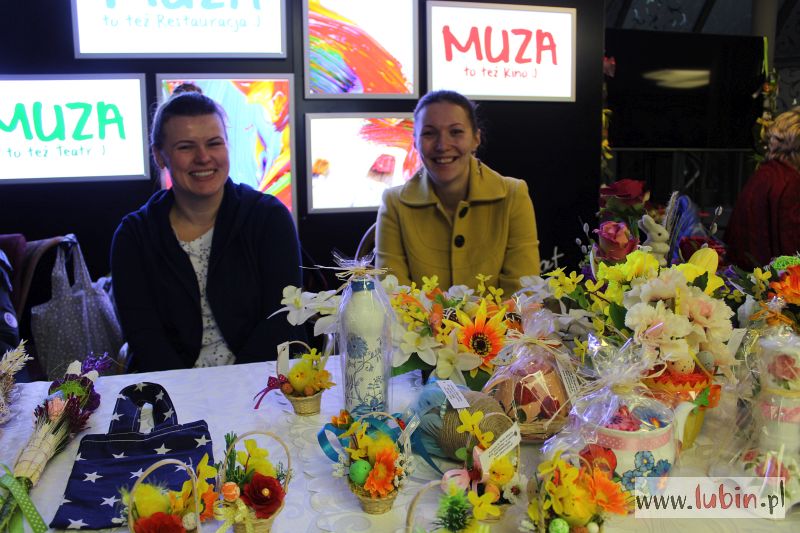 Podczas gdy dzieci bawiły się na dużej scenie, w holu Muzy rozstawiono stoiska handlowe. Na jarmarku można było kupić między innymi świąteczne stroiki, pisanki oraz zabawki. Handlujących było mniej niż w ubiegłych latach, ponieważ główny jarmark odbywa się tym razem na lubińskim rynku.