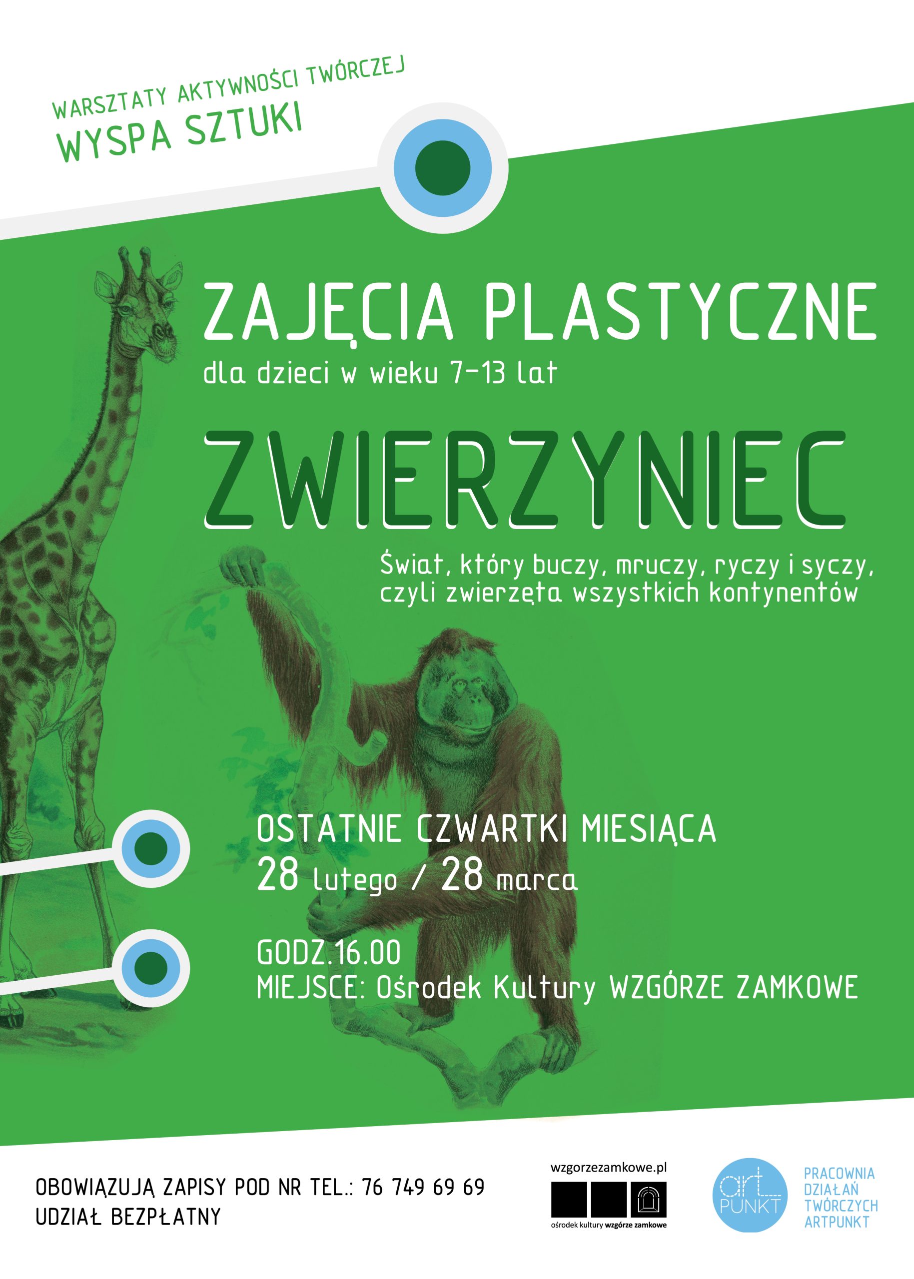 Zajęcia plastyczne odbywające się w ramach Warsztatów Aktywności Twórczej Wyspa Sztuki kierowane są do dzieci w wieku 7-13 lat i są zupełnie darmowe. Odbywają się w ostatnie czwartki miesiąca o godz. 16 w Pracowni Działań Twórczych Artpunkt. Najbliższe warsztaty odbędą się już w przyszły czwartek, 28 lutego, ale można zapisywać się również na kolejne zajęcia (28 marca).