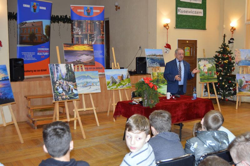 W bibliotece Chobieńskiego Ośrodka Kultury odbyło się spotkanie z niezwykłym człowiekiem, który łączy pasję do historii i sztuk plastycznych. Z wielką miłością o swojej lokalnej ojczyźnie, w której spędził prawie całe swoje życie, opowiadał Henryk Rusewicz.