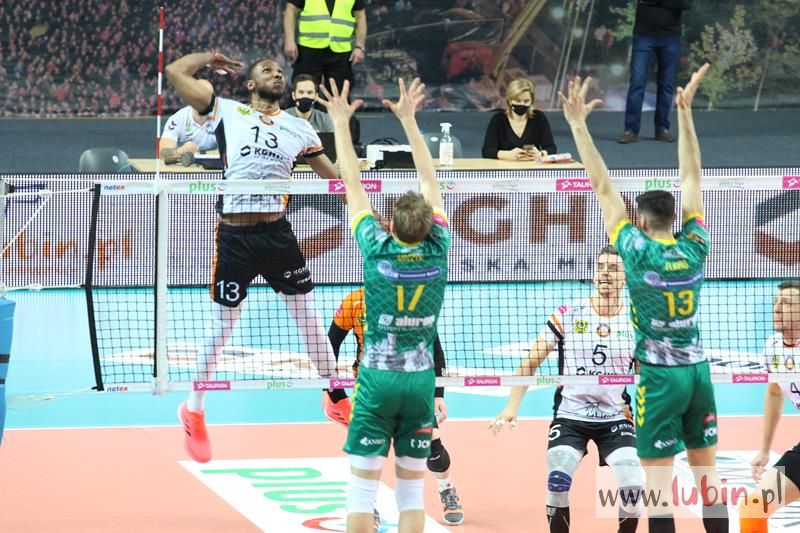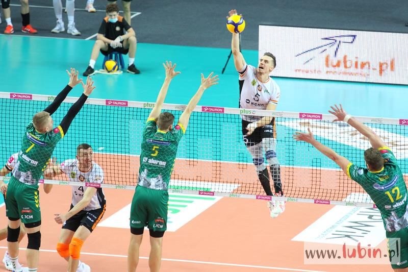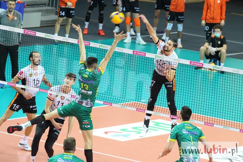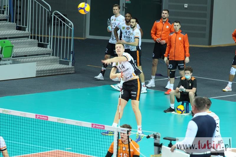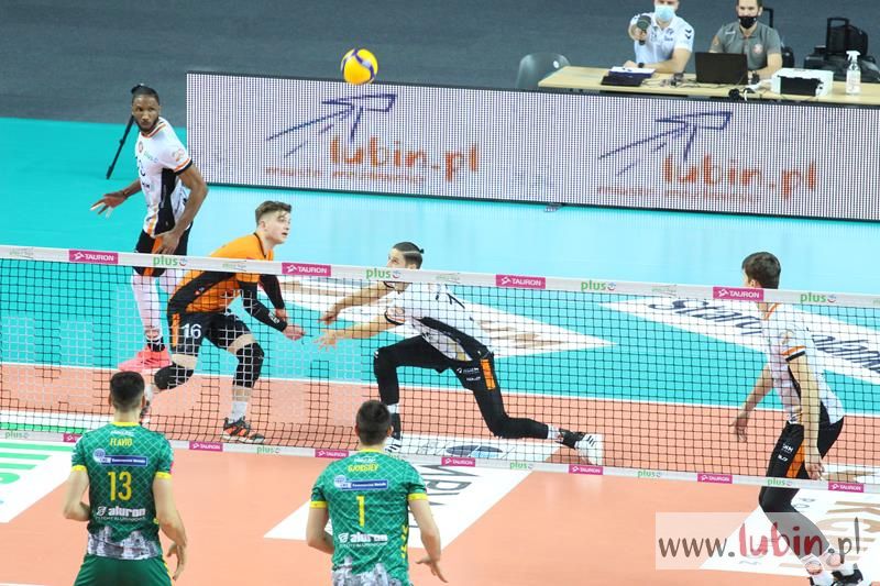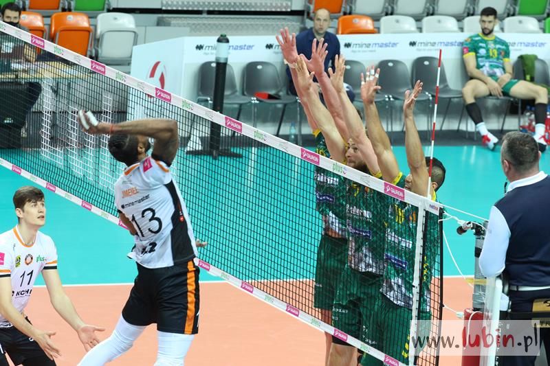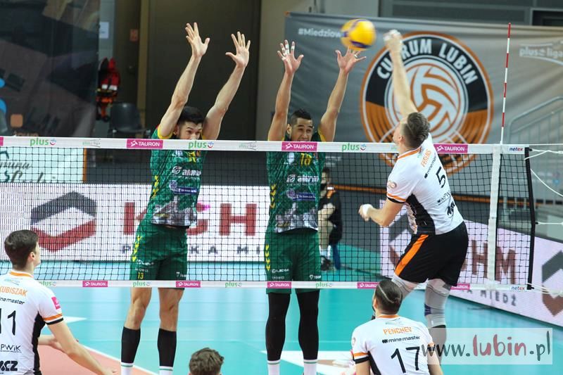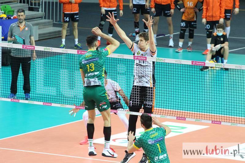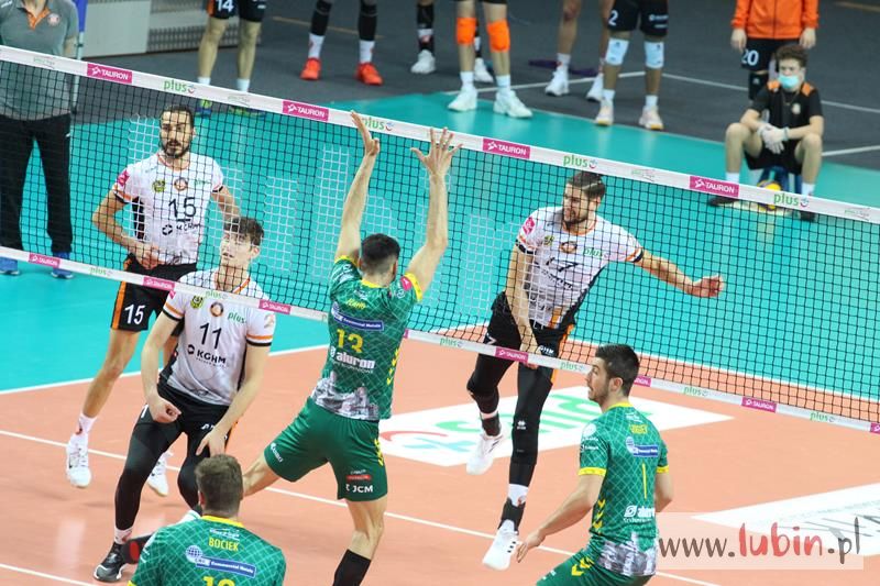 Miedziowe Lisy bardzo dobrze zaczęły spotkanie 22 kolejki PlusLigi, w którym podejmowały Aluron Zawiercie. Pierwsze punkty zdobywał przyjmujący Wojciech Ferens. Znakomity podwójny blok Nokolay Pencheva i Dawida Guni i było 4:2. Goście zaczęli jednak odrabiać straty, a as serwisowy Garretta Muagututiaego dodał werwy gościom. Przez większość tej części meczu to Cuprum Lubin prowadziła spotkanie i sukcesywnie zdobywając punkt za punktem dążyła do zwycięstwa. Rywale zaczęli jednak lepiej zagrywać i lepiej spisywać się w elemencie przyjęcia. Zrobiło się dość nerwów, bo mecz odbywał się już na przewagi. Ostatecznie wojnę nerwów wygrali miejscowi i ustanowili wynik na 30:28, a ostatni punkt zdobyła szczęśliwa trzynastka – Ronald Jimenez.