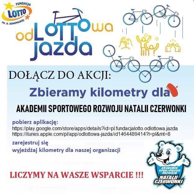 – Akademia została zakwalifikowana do drugiej rundy, gdzie czterdzieści pięć organizacji walczy z sobą do piętnastego września. Celem rywalizacji jest zebranie jak największej ilości przejechanych kilometrów na rowerze przez wspierających nas ludzi. Aby zacząć zbierać kilometry należy pobrać na telefon aplikacje odLOTTOwa jazda, wybrać Akademię i ruszać w trasę. Nie zapominamy oczywiście wcisnąć start. Wygrany otrzyma sto tysięcy złotych na cel, który wcześniej rozpisał! W naszym przypadku jest to bus i łyżwy dla dzieci. Warto nas wspomóc i przyczynić się do rozwoju sportu. Razem możemy więcej – podkreśla Natalia Czerwonka, założycielka Akademii Sportowego Rozwoju.