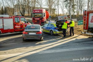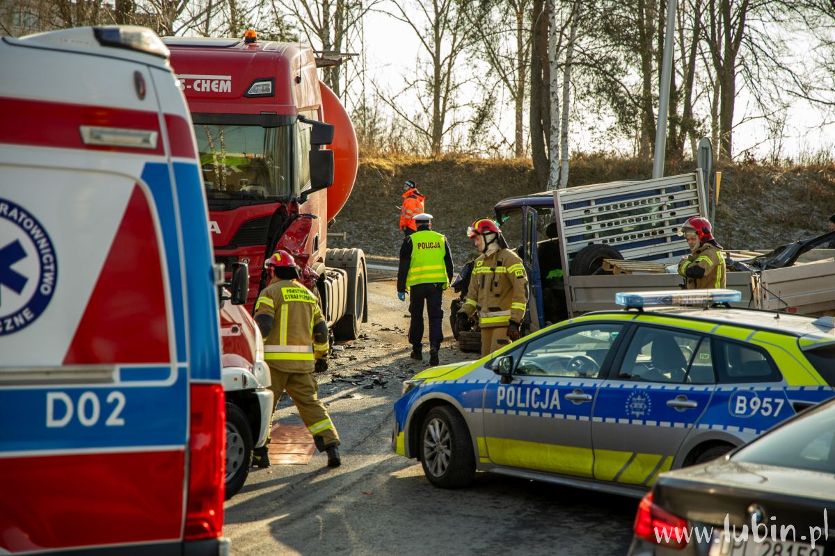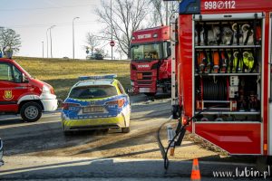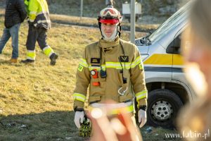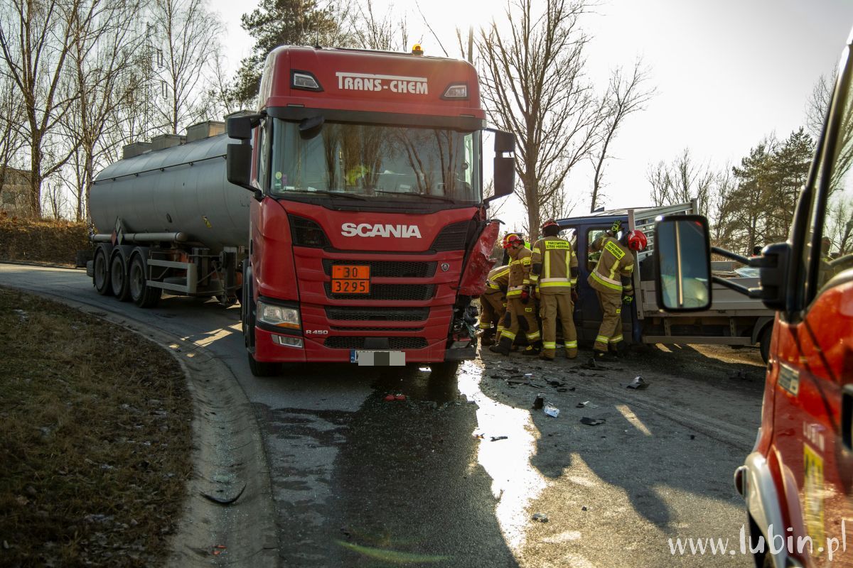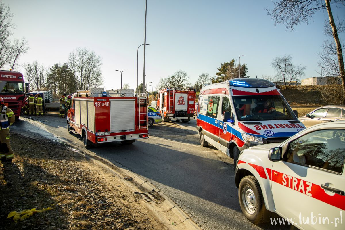 Na miejscu pracują także strażacy, którzy uwolnili z pojazdu 76-latka. – Po przejeździe na miejsce zdarzenia zabezpieczyliśmy miejsce zdarzenia, po czym przystąpiliśmy do wykonania dostępu do kierowcy za pomocą sprzętu hydraulicznego. Jednocześnie monitorowaliśmy stan zdrowia poszkodowanego – mówi st. kpt. Karol Baran, zastępca dowódcy jednostki ratowniczo-gaśniczej z Komendy Powiatowej Państwowej Straży Pożarnej w Lubinie.