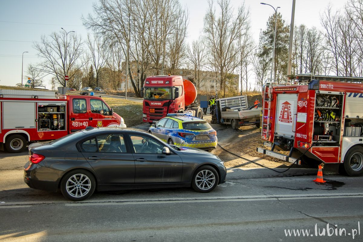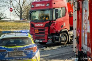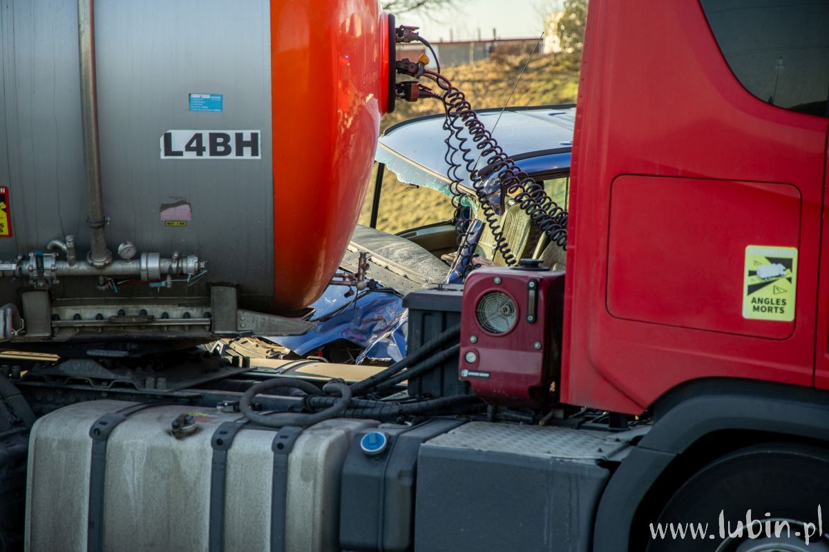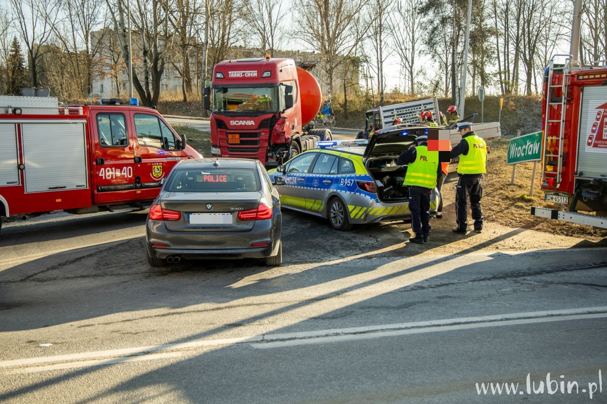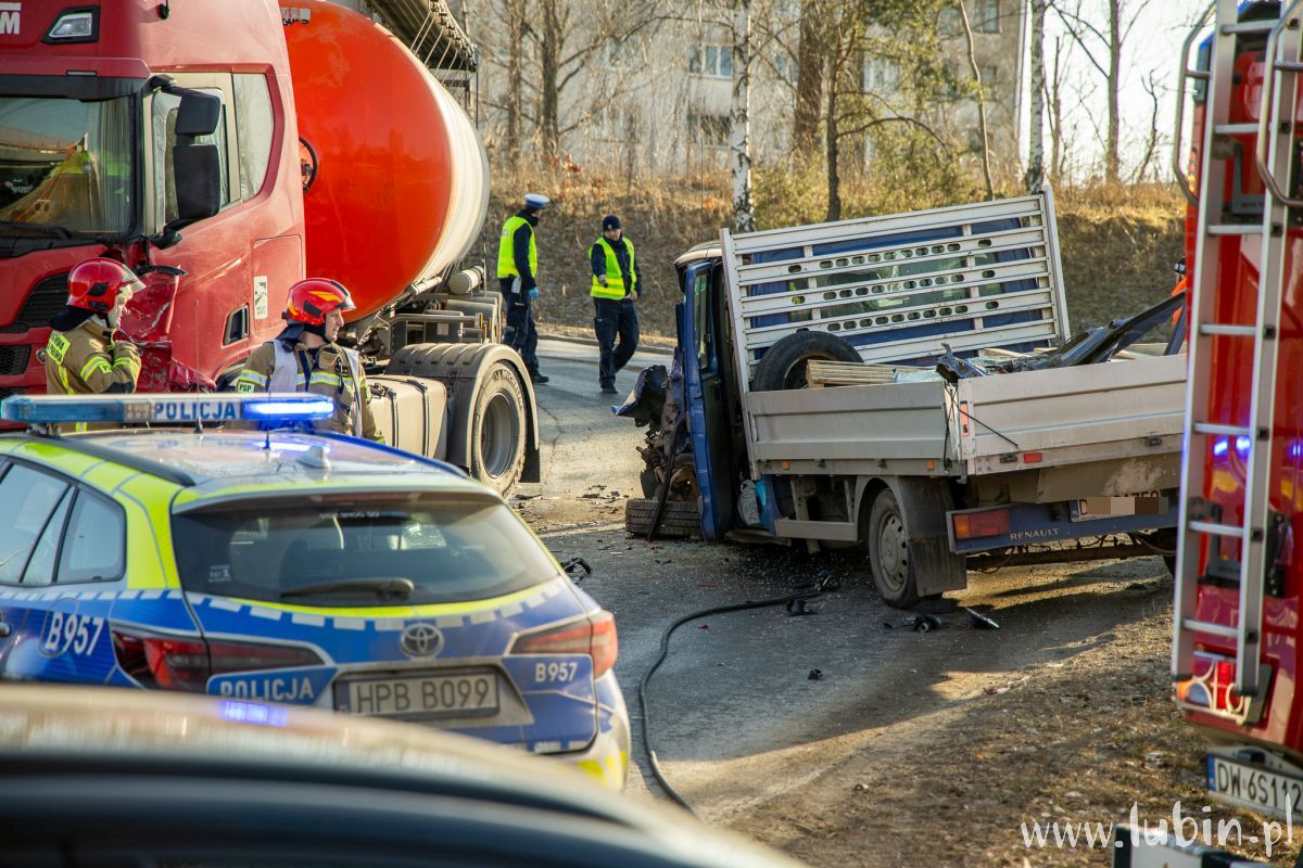 Jak wstępnie ustalili funkcjonariusze lubińskiej drogówki, kierujący ciężarową Scanią zestawem pojazdów na łuku drogi, skręcając z ul. Marii Skłodowskiej-Curie na ul. Hutniczą, zjechał na przeciwległy pas ruchu, doprowadzając do zdarzenia drogowego z prawidłowo jadącym Renaultem.