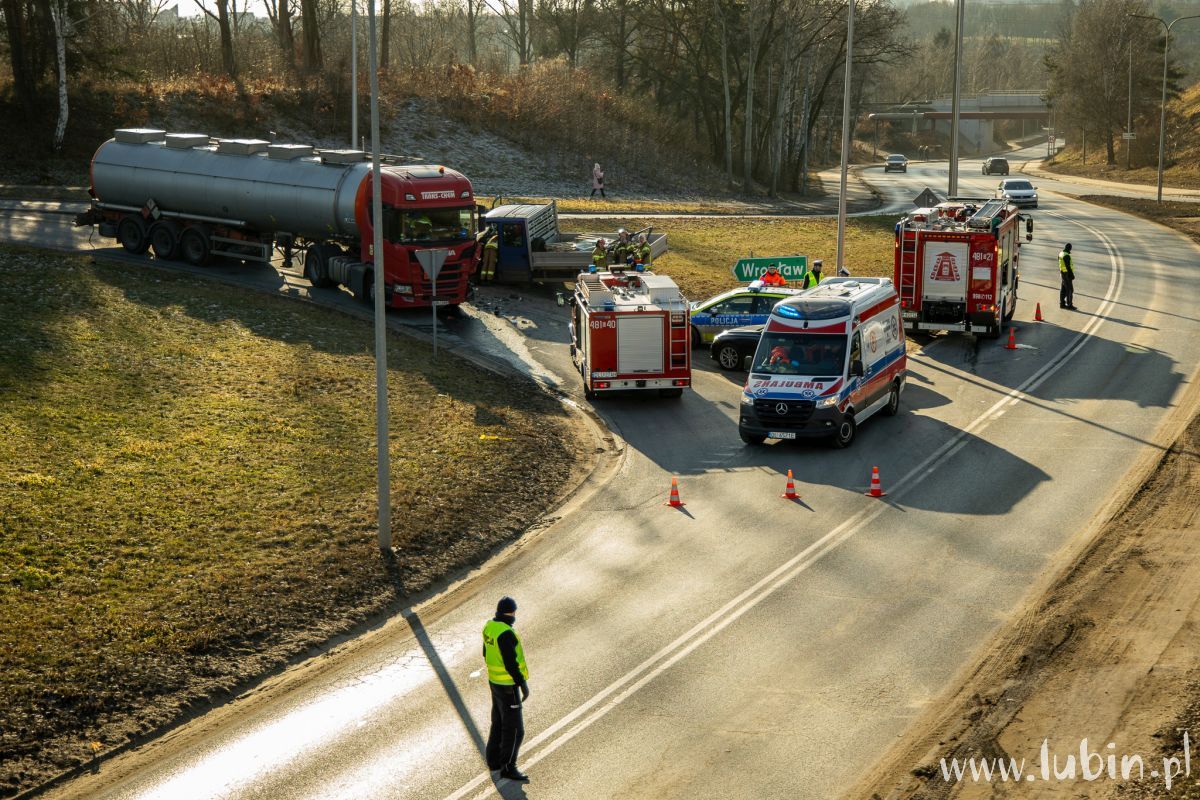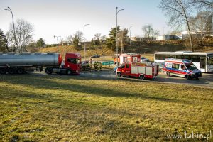 Zderzenie cysterny z busem. Jedna osoba w szpitalu