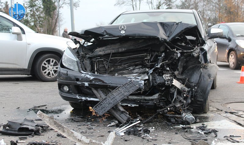 Pasażerka podróżująca mercedesem została zabrana przez pogotowie do szpitala na badania. Na razie nie wiadomo, czy odniosła poważniejsze obrażenia.