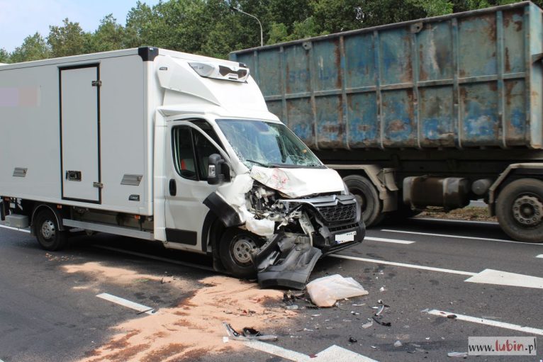 Do groźnie wyglądającej kolizji doszło dziś na drodze krajowej nr 3 pomiędzy Lubinem a Polkowicami. Na wysokości zjazdu na Rudną dostawczy citroen uderzył w tył ciężarówki. Na szczęście nikomu z podróżujących nic się nie stało.