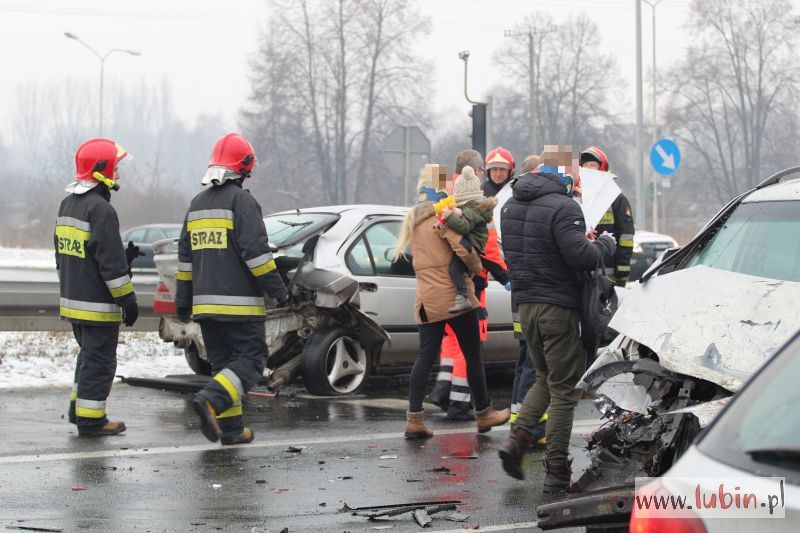 Trzy z aut: seat, ford i honda, zostały mocno uszkodzone. Na miejscu pojawiła się policja, straż pożarna oraz kilka karetek pogotowia. Dwie rodziny: troje dorosłych oraz trójka dzieci, w tym dwulatek, zostały zabrane do szpitala. Na szczęście nikt nie odniósł poważniejszych obrażeń.