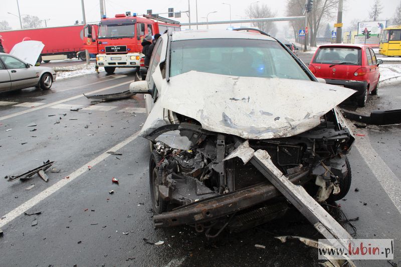 – 61-latek kierujący seatem, na skrzyżowaniu drogi krajowej numer trzy z ulicą Ścinawską, najechał na auta, które stały na czerwonym świetle: daewoo, hondę, opla i forda. Samochody po kolei uderzały w te, które stały przed nimi – mówi starszy aspirant Sylwia Serafin z lubińskiej policji.