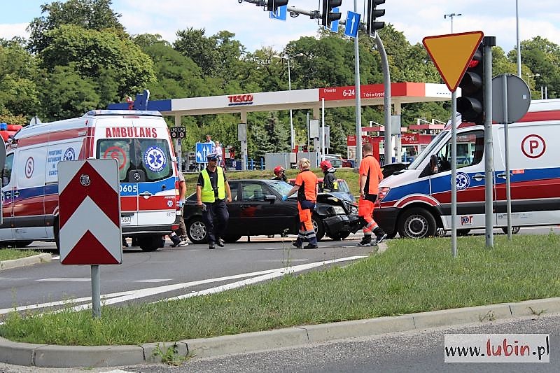 Kierowca mercedesa wraz z pasażerką zostali odwiezieni do lubińskiego szpitala, natomiast kierowca skody nie odniósł poważniejszych obrażeń.
