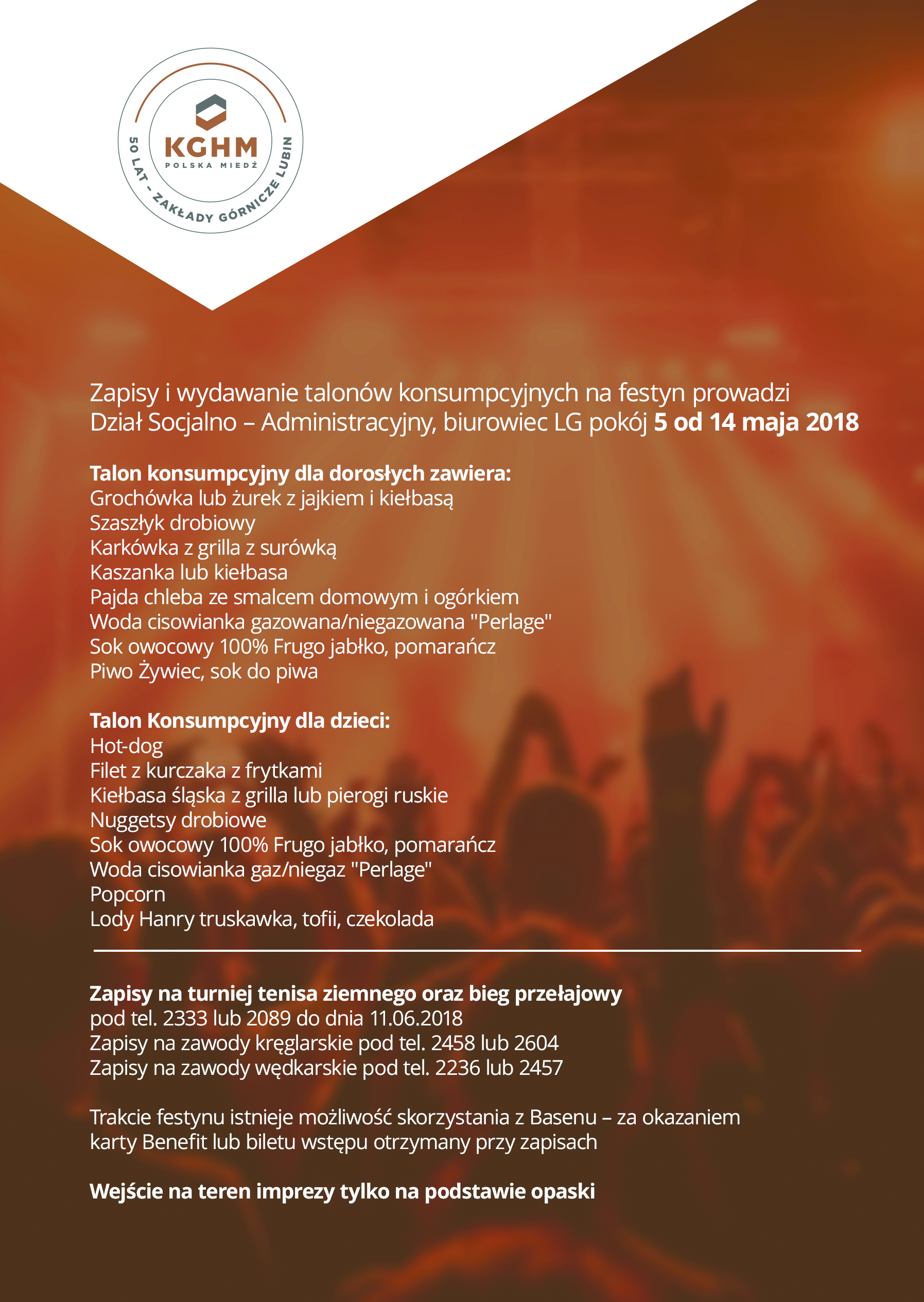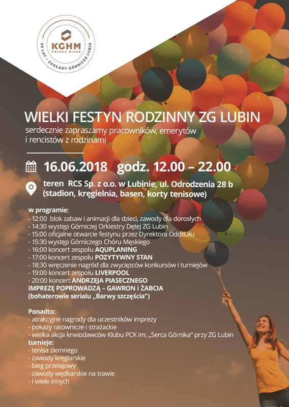 Jak zauważają organizatorzy festynu, ZG Lubin to bardzo ważna kopalnia w historii naszego miasta i regionu. – Najstarsza kopalnia Polskiej Miedzi w 1968 roku zaczęła wydobywać podziemne bogactwo, dając początek eksploatacji najbogatszych złóż miedzi w Europie. Dzisiejszy Lubin nie przypomina sennego miasteczka z tamtych lat, to nowoczesne miasto, które może poszczycić się wieloma osiągnięciami technicznymi, gospodarczymi i kulturalnymi – przypominają pracownicy kopalni, jednocześnie dodając, że w ciągu 50 lat przez ZG Lubin przewinęło się aż 25 tysięcy pracowników.