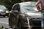 Mężczyzna z dużym impetem uderzył w auto, wgniatając przednią szybę i część dachu.