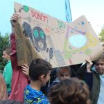 Na stworzonych plakatach pojawiły się rysunki prezentujące pomysły, jak dbać o naszą planetę. Dzieci wiedzą, że mniej spalin to czystsze powietrze, więc lepiej podróżować autobusem, gdzie mieści się więcej osób. Warto również segregować śmieci i nie wyrzucać ich do lasów.