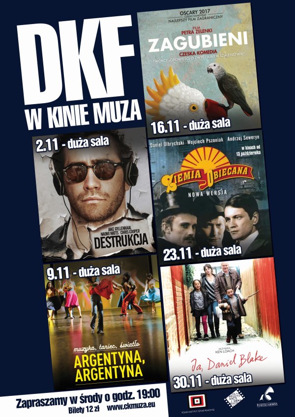 Na początek, 2 listopada, wyświetlony zostanie film „Destrukcja”. Potem będzie można obejrzeć produkcje: „Argentyna, Argentyna” (9 listopada), „Zagubieni” (16 listopada), „Ziemia obiecana (23 listopada) i „Ja, Daniel Blake” (30 listopada).