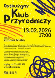 Pierwsze spotkanie w ramach Dyskusyjnego Klubu Przyrodniczego odbędzie się w najbliższy piątek, 13 lutego o godzinie 17 i połączone będzie ze wspólną obserwacją nocnego, zimowego nieba. Pracownicy zoo zapewniają, że po piątkowym spotkaniu każdy jego uczestnik będzie potrafił rozpoznać pięć podstawowych, zimowych gwiazdozbiorów i bez problemu odnajdzie je na niebie.