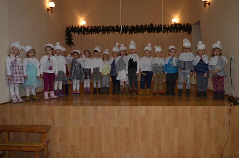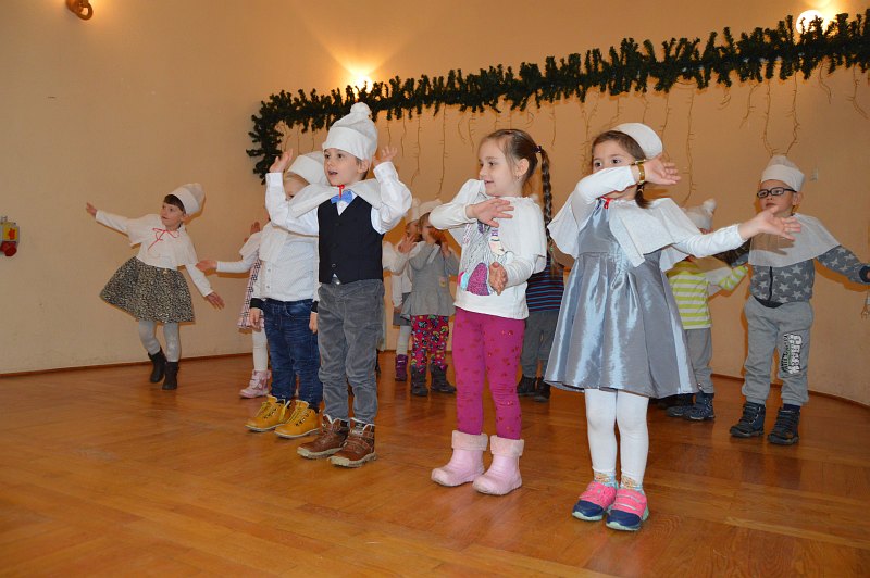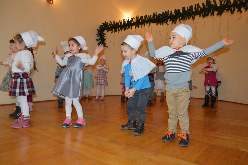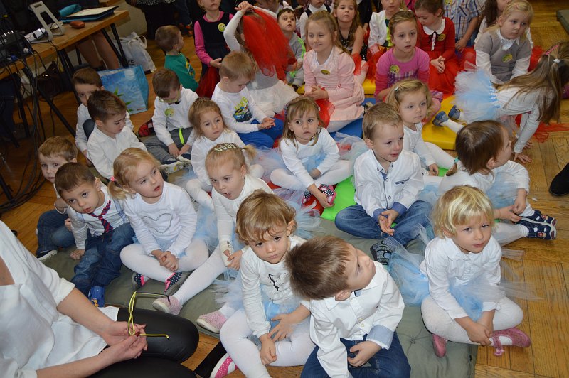W występach brało udział sześć grup w wieku od 3 do 6 lat. Jako pierwsze wystąpiły trzyletnie maluchy pod kierunkiem Katarzyny Breus w tańcach do piosenek: „Nie ma jak aniołki„ i „Jadą sanie”.