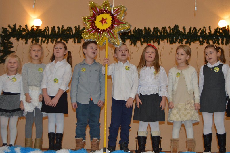 Sześciolatkowie pod kierunkiem Jolanty Karpiak zatańczyły „Zimową sambę” i zaśpiewały piosenkę o świecącej gwiazdeczce.