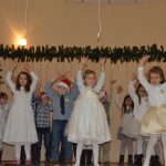 Monika Leciejewska ze swoją grupą trzy- i czterolatków zaprezentowała się w piosence „Choineczki” i „Jedzie Mikołaj”.