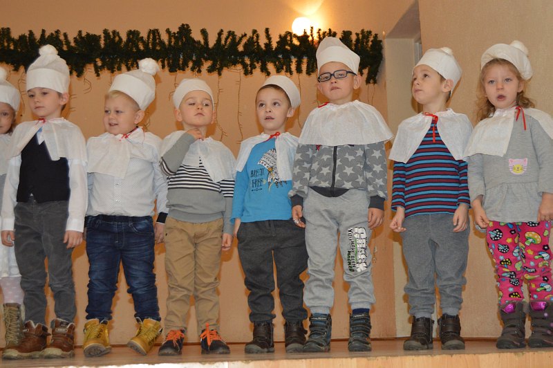 Grupa pięciolatków z Katarzyną Socha zaśpiewała piosenkę o „Mikołaju” i „Pada śnieg”.