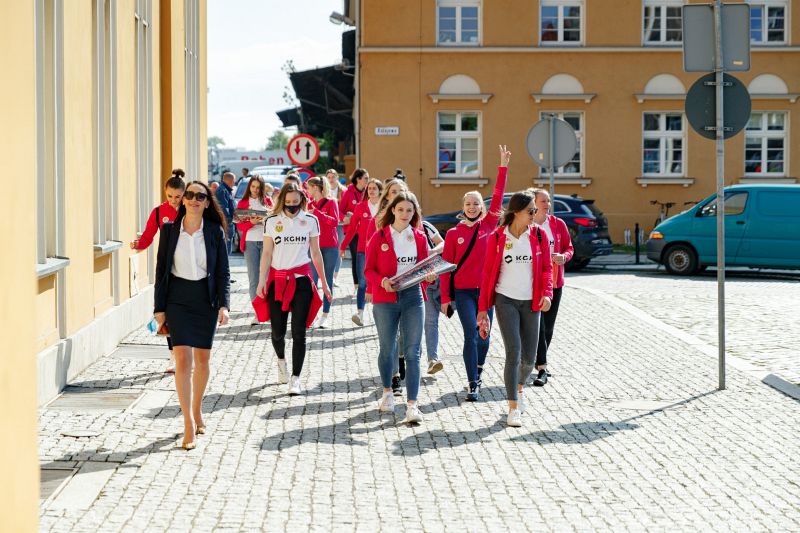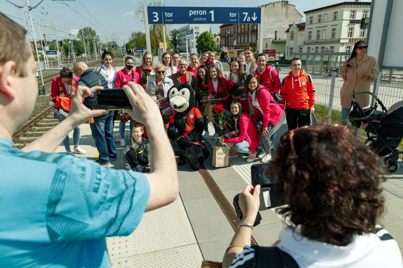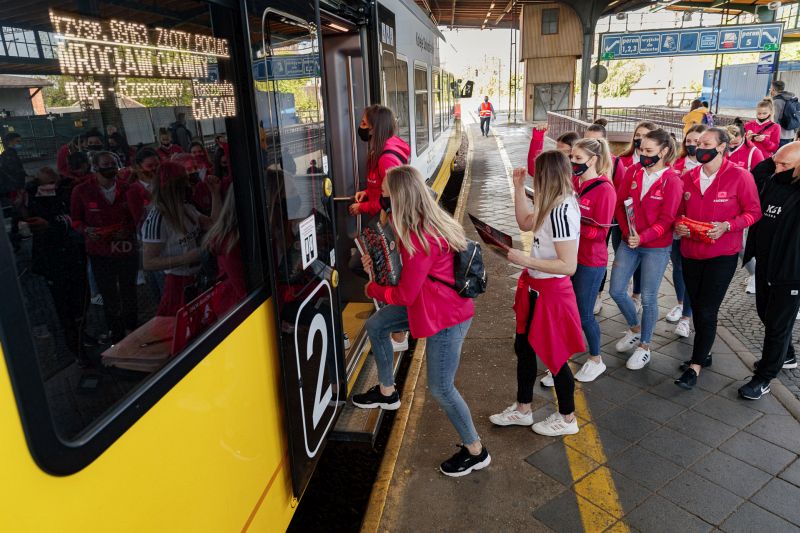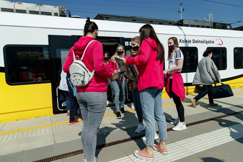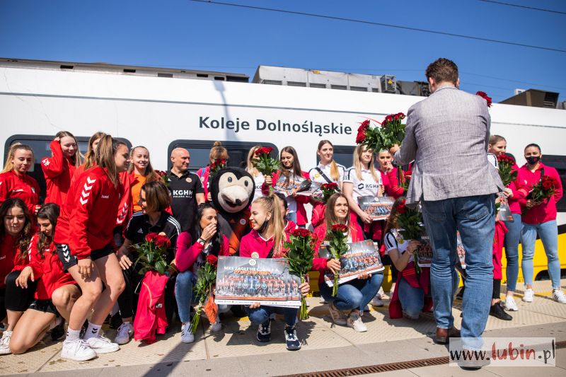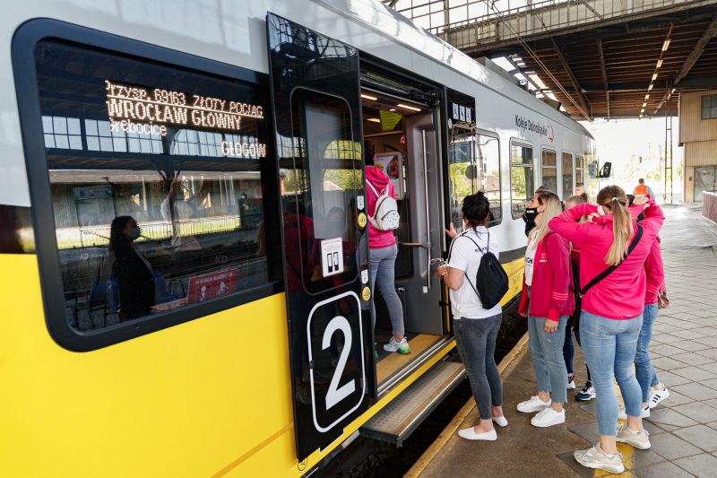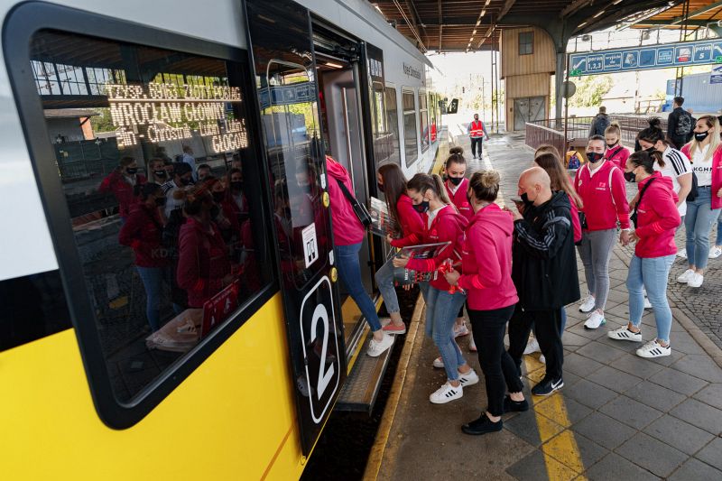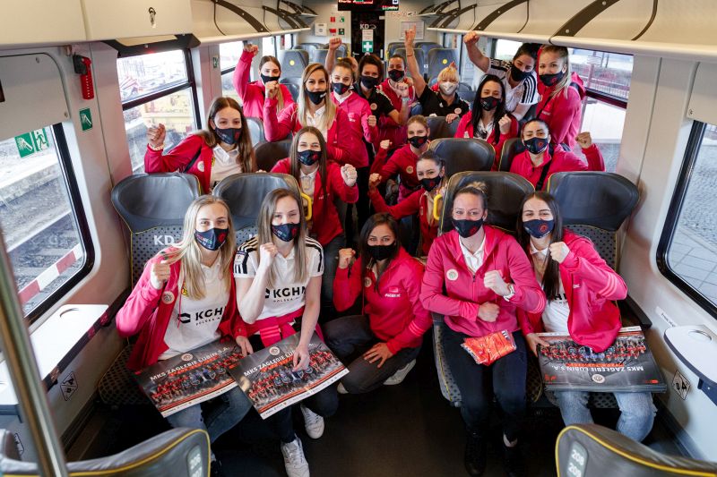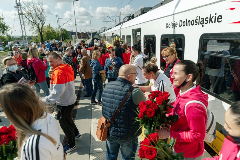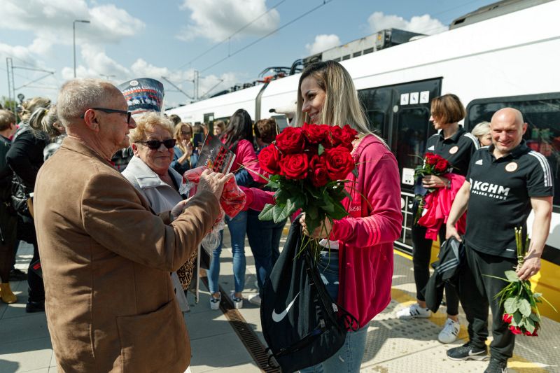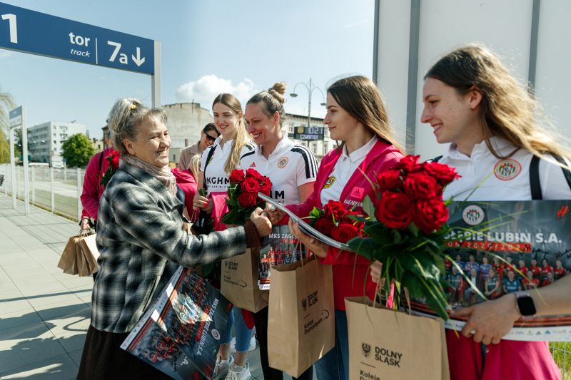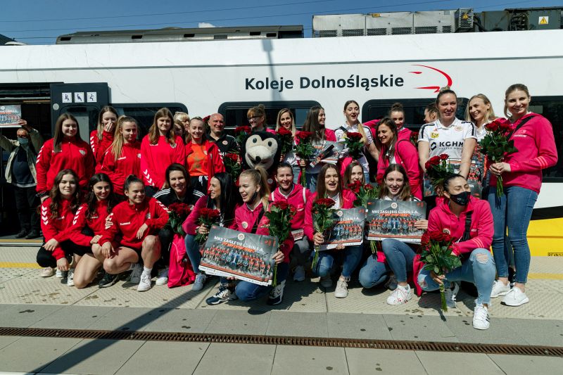 To, że piłkarki przyjechały na spotkanie z kibicami pociągiem, nie jest przypadkowe. Koleje Dolnośląskie od dawna wspierają żeńską drużynę szczypiornistek z Lubina.