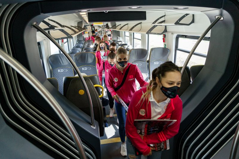Koleje Dolnośląskie wspierają ich zespół od dawna, stąd nie mogło zabraknąć symbolicznej podróży pociągiem. Tym bardziej, że jedna z zawodniczek, pochodząca z Serbii, Jovana Milojewić jechała nim po raz pierwszy! Piłkarki Zagłębia Lubin wysiadły dziś na stacji Lubin Główny, gdzie spotkały się z kibicami.