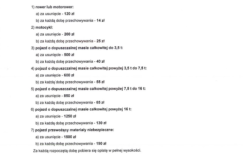 Koszty wynikające z powyższych działań – opłaty za usuwanie i transport pojazdów, wynajmowanie parkingów, wyceny, opłaty sądowe i opłaty administracyjne – wyniosły 88.300 zł. Natomiast przychody z tytułu opłat za usunięcie i przechowywanie pojazdów oraz zezłomowanie części pojazdów wyniosły około 88.600 zł. W związku z tym stawki na 2022 rok zostały utrzymane na tym samym poziomie, jak rok wcześniej.