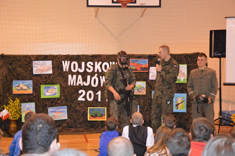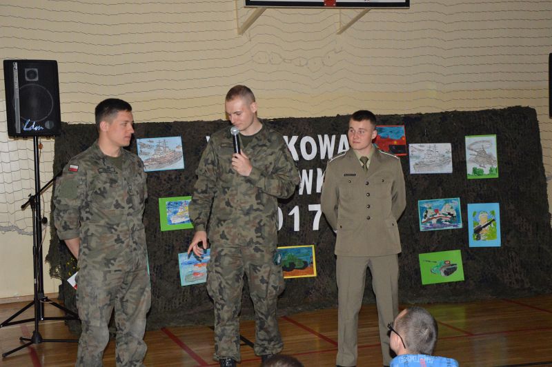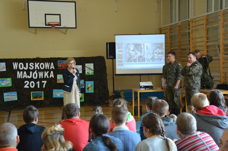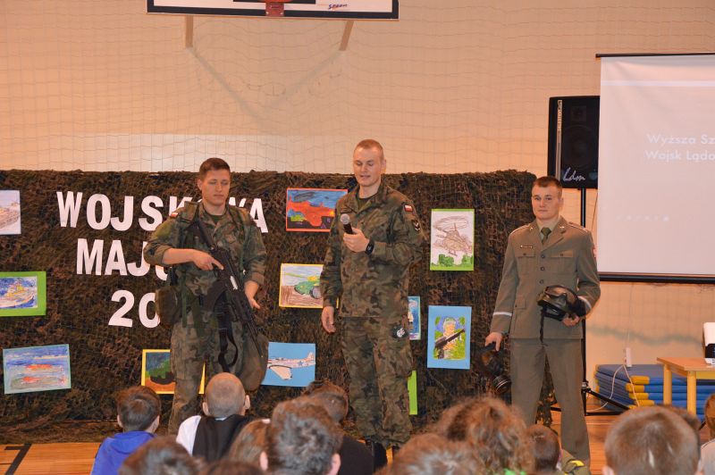 Gości przywitała w imieniu szkoły dyrektor Danuta Wantuła. Zaś uczniowie, by wprowadzić przyjazną atmosferę i miło rozpocząć spotkanie wykonali piosenkę „Szara piechota” z akompaniamentem gitary. Później głos zabrali żołnierze. Opowiedzieli i pokazali filmy o historii i tradycjach oraz o szkoleniu i służbie żołnierzy.