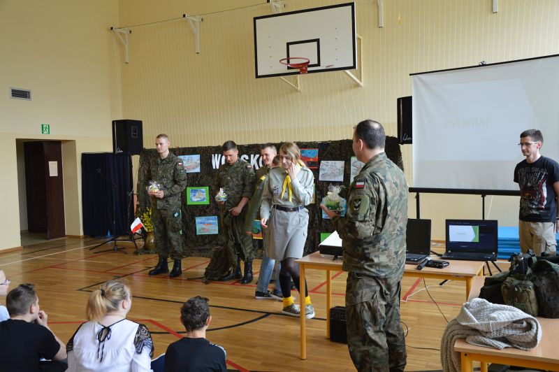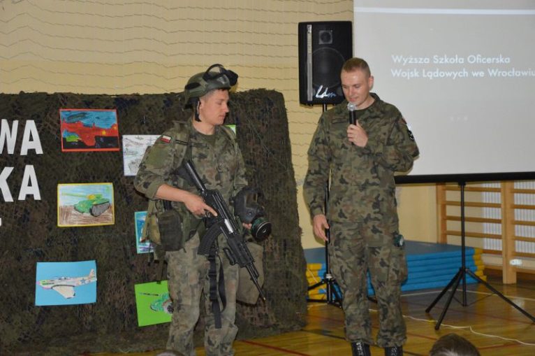 Studenci Wyższej Szkoły Oficerskiej Wojsk Lądowych z Wrocławia odwiedzili Zespół Szkół i Placówek Oświatowych w Lubinie. Opowiedzieli uczniom o historii i tradycji służby wojskowej oraz o wyposażeniu polskiego wojska.