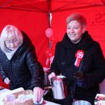 Ci którzy zmarzli, mogli ogrzać się gorąca herbatą i kawą, roznoszoną przez sympatyczne panie z Domu Dziennego Pobytu Senior lub wejść do hali, gdzie o godzinie 16.30 rozpoczęło się wspólne śpiewanie pieśni patriotycznych.